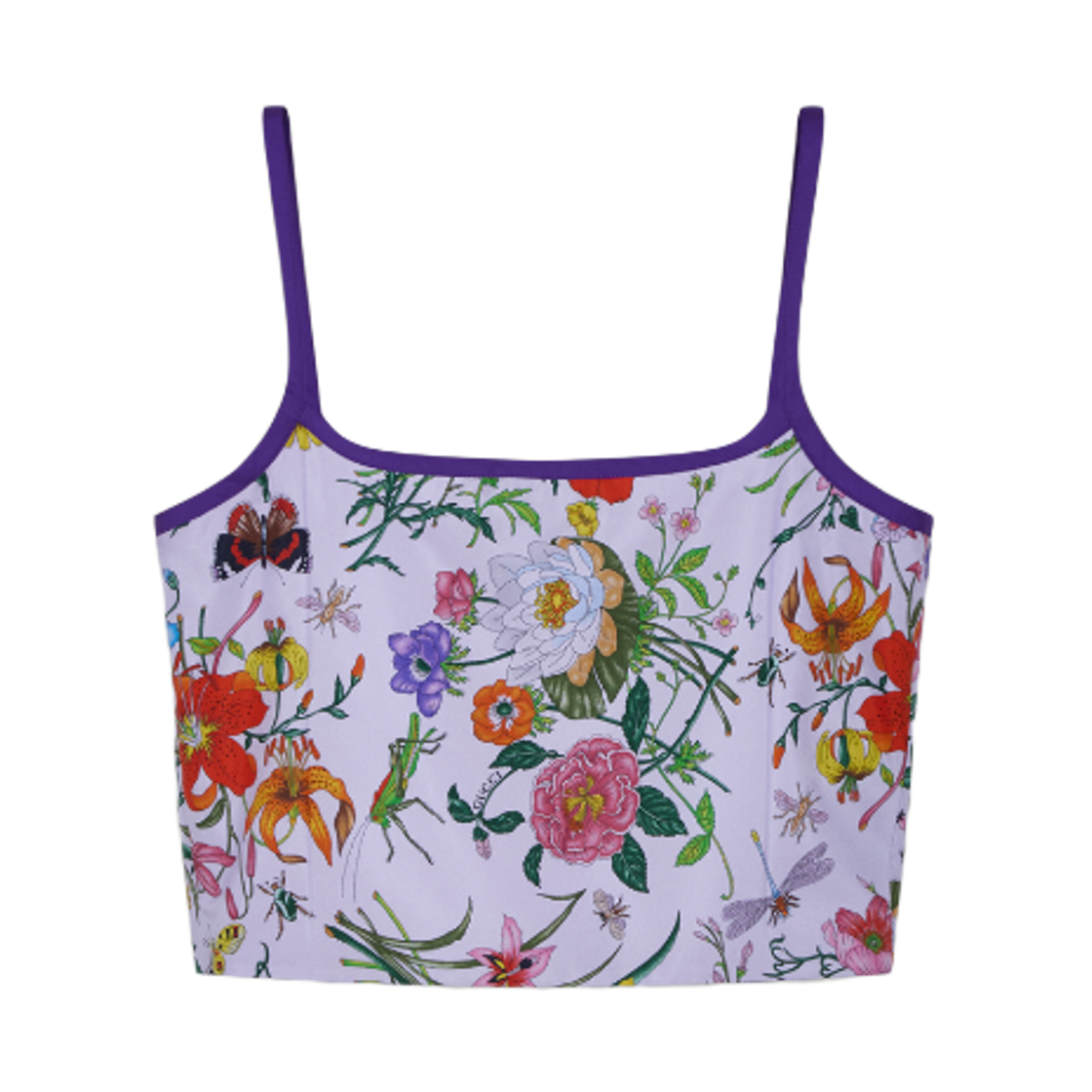 (W) Gucci Flora Printed Silk Top Purple