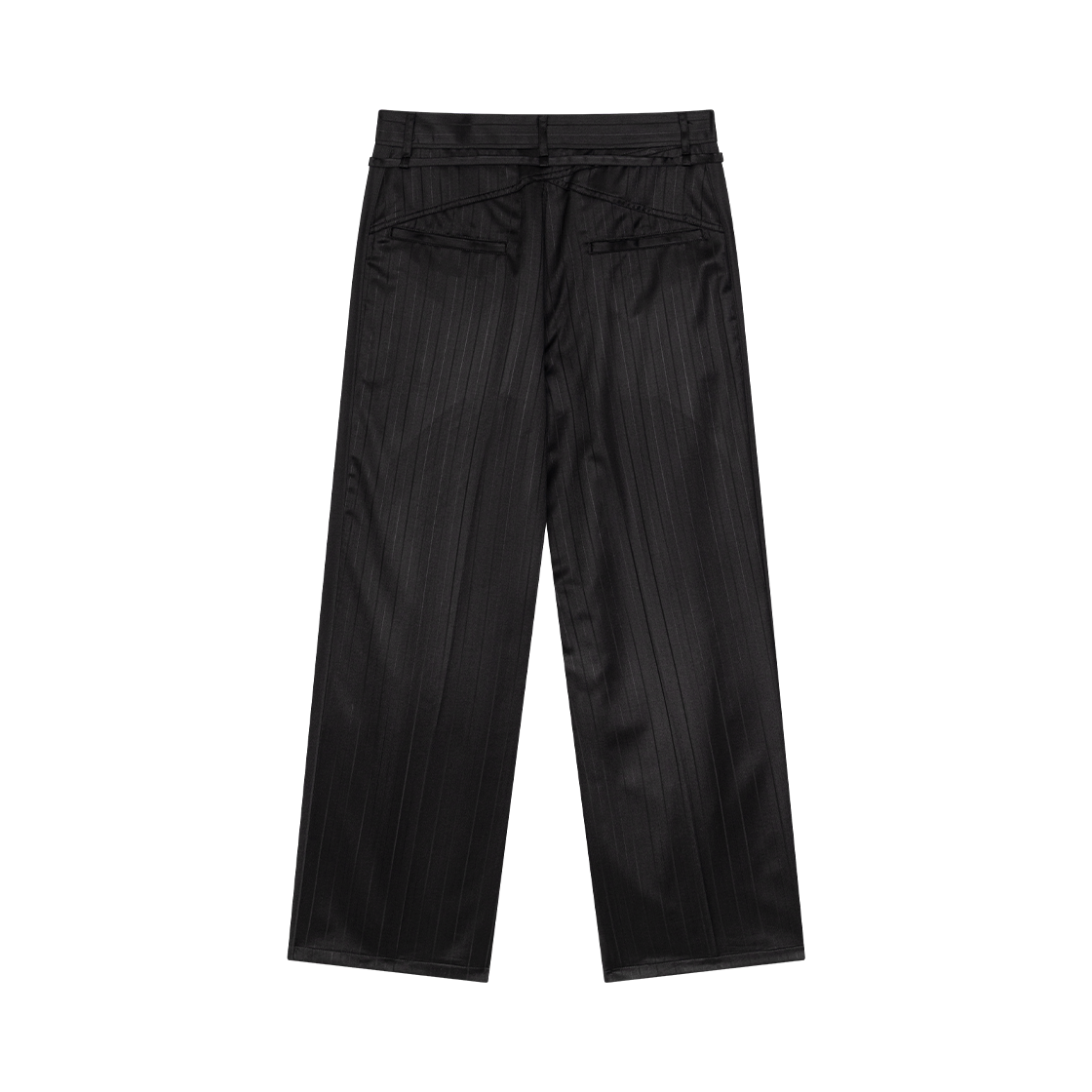 웨이비니스 딥 원 턱 사이드 라인 울 트라우저 블랙 스트라이프
