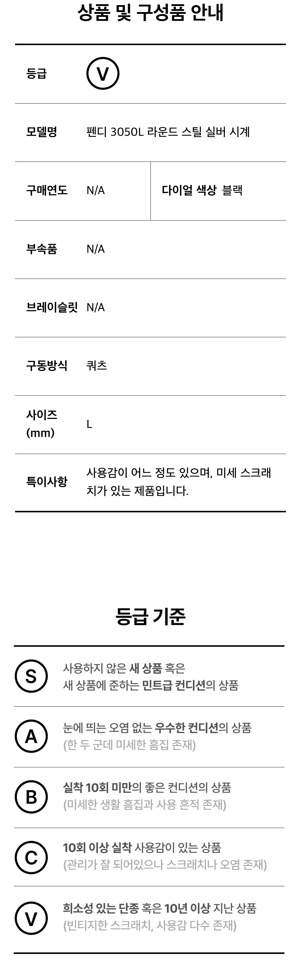 펜디 3050L 라운드 스틸 실버 시계 A-B14457