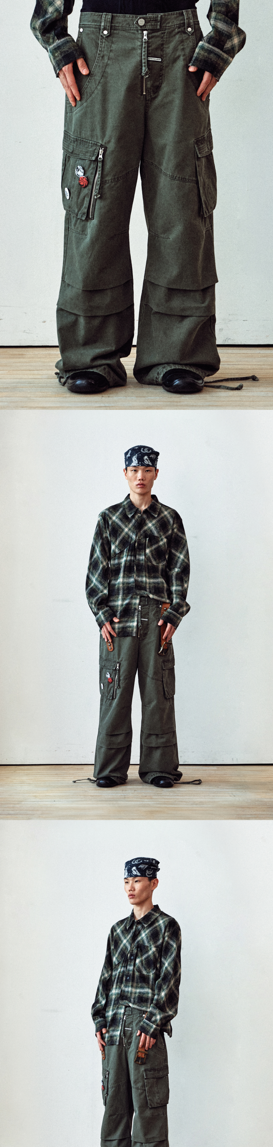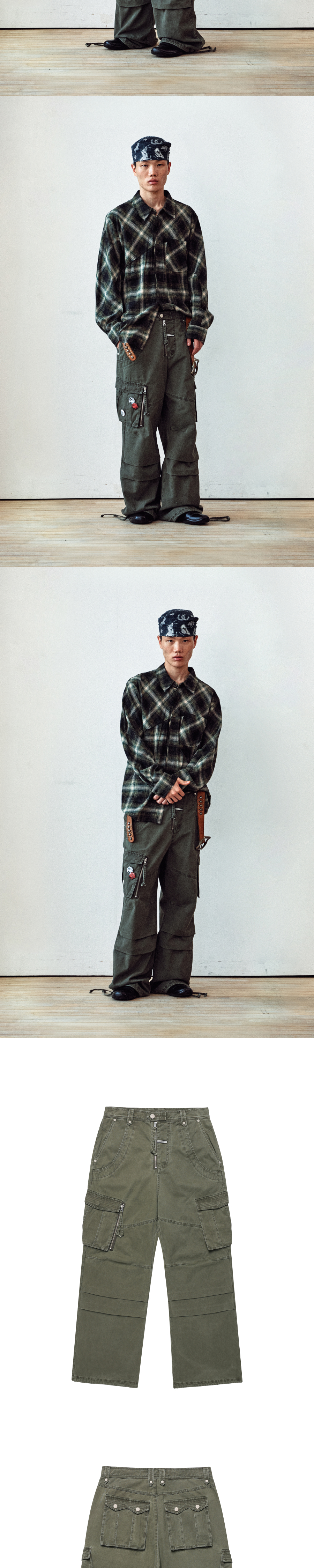 더바이닐하우스 워시드 밀리터리 카고 팬츠 카키