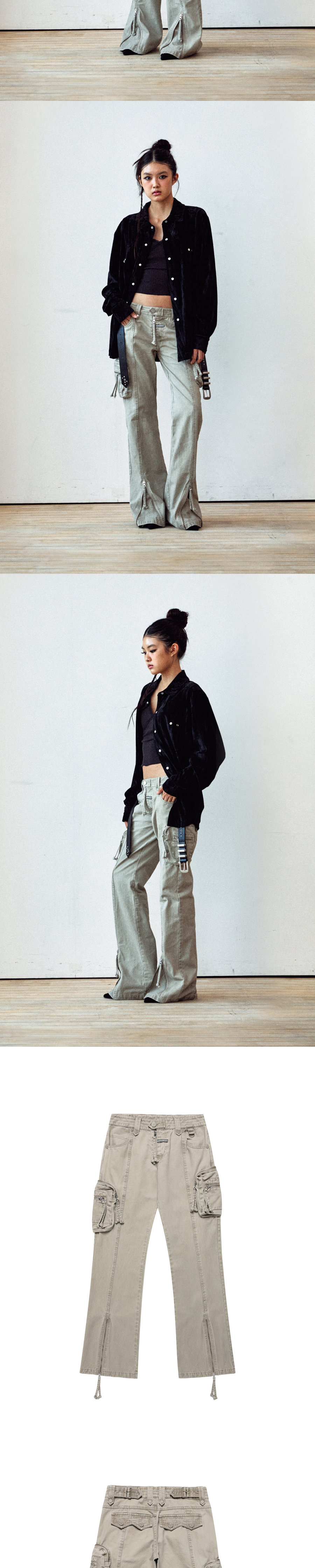 더바이닐하우스 워시드 밀리터리 우먼 카고 팬츠 베이지