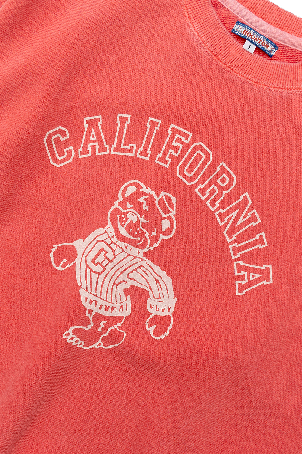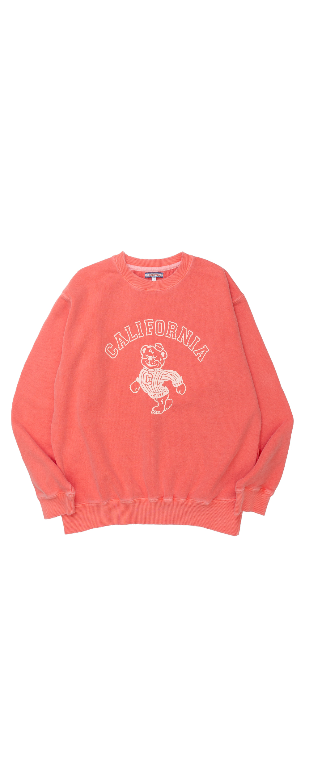 Houston Japan 2030W Pigment Print Sweat (CALIFORNIA) - Red 적당한 품의 여유있는 실루엣, 컴팩트한 길이감의 크루넥 스웻 셔츠입니다. 프런트에는 '칼리지조(College Joe)'의 곰의 로고를 프린트한 것이 특징입니다. 피그먼트 가공하여 빈티지함을 더했습니다. * Cotton 100% * 빛에 의한 제품의 색감 차이가 존재 할 수 있습니다. * Made in China