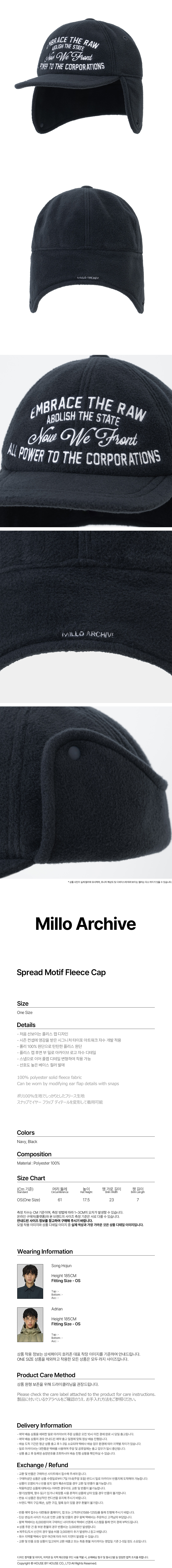 밀로 아카이브 스프레드 모티프 플리스 캡 네이비