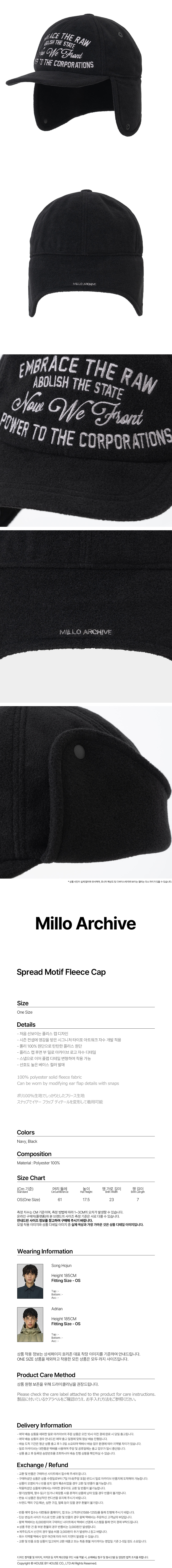 밀로 아카이브 스프레드 모티프 플리스 캡 블랙