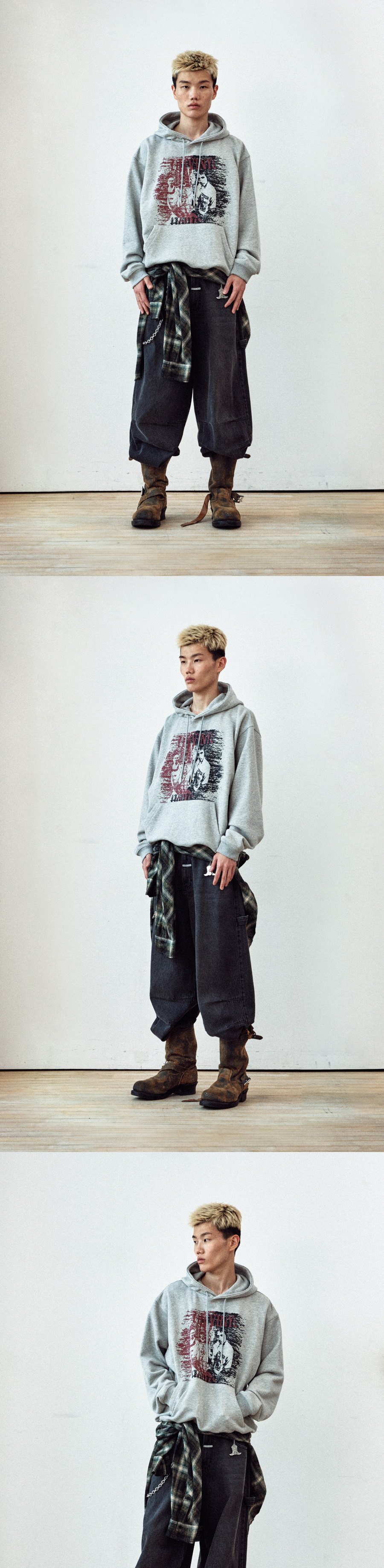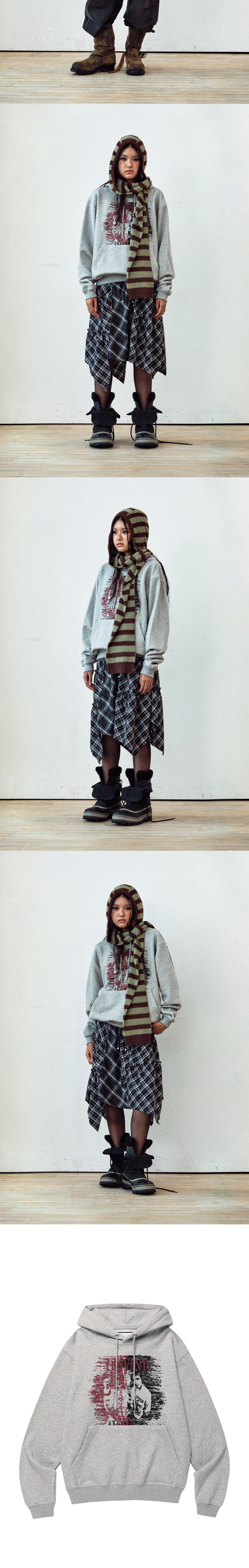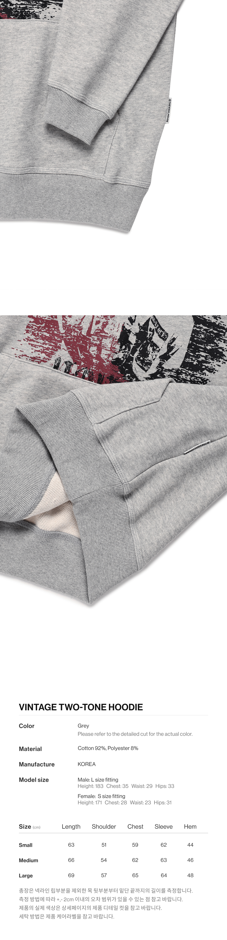 더바이닐하우스 빈티지 투톤 후디 그레이