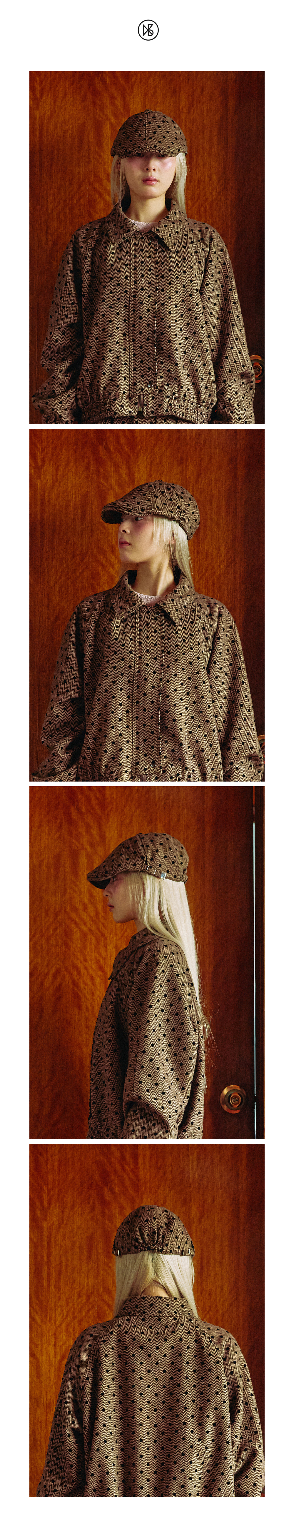 Wool Dot Herringbone Hunting Cap FABRIC Wool 70%, Polyester 30% DETAIL - 울 혼방 도트 헤린본 패턴의 헌팅캡 - 양 옆 사이드 사이즈 조절 금속 버클 - 뒷 면 밴드내장 - 안쪽 티씨 해리 마감 SIZE -FREE사이즈 (남여공용) -머리둘레 약 59cm, 높이 약 15cm WASHING INSTRUCTIONS -드라이크리닝 MODEL Miu, Height 162cm