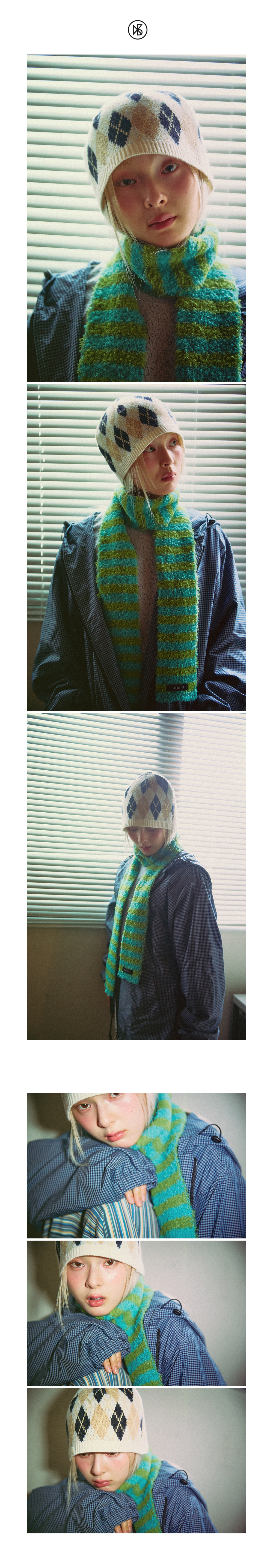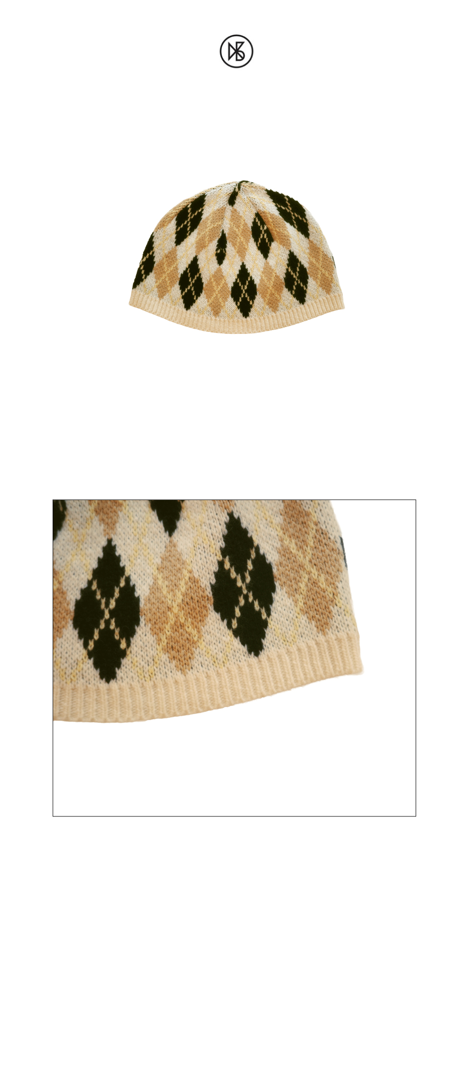 Argyle Knit Beanie FABRIC Wool 50%, Nylon 35%, Polyester 15% DETAIL -아가일 패턴의 울 혼방 니트비니 -깊은 깊이감 -여유 있는 버킷햇 핏 SIZE -원사이즈 높이 21cm, 밑단둘레(단면) 31.5cm *같은 제품이라도 재는 위치에 따라 오차가 있을 수 있습니다* *해상도에 따라 화면에서 보이는 것과 색감차이가 날 수 있습니다. * WASHING INSTRUCTIONS -드라이크리닝 MODEL Miu, Height 162cm