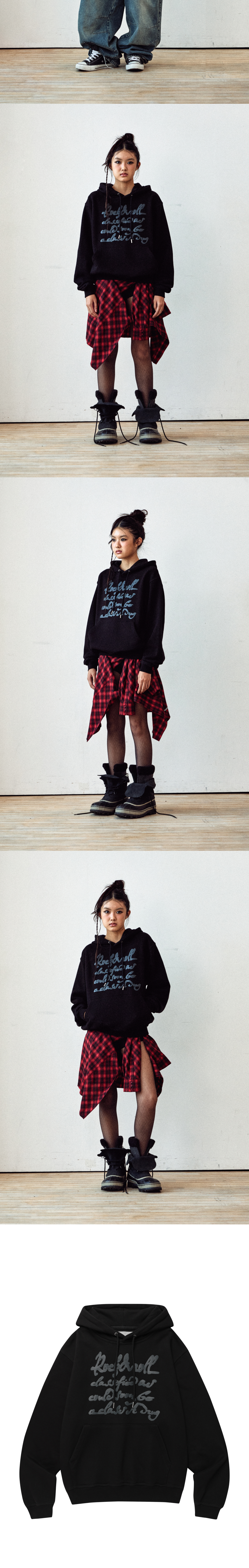 더바이닐하우스 커시브 라이팅 타이포 후디 블랙