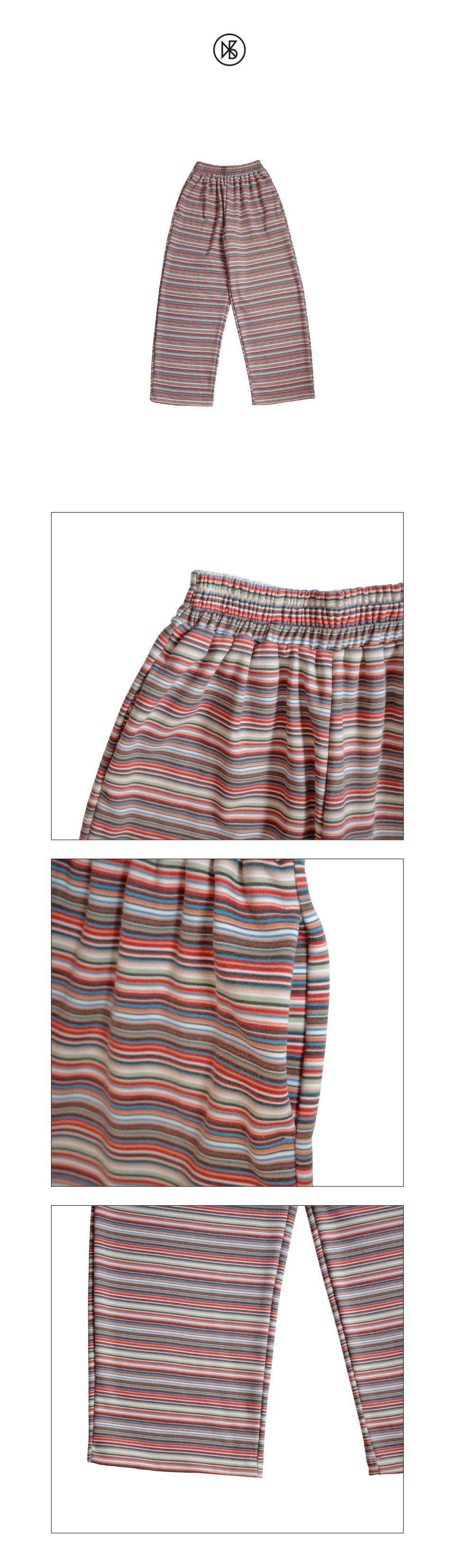 Nana Stripe Banding Pants FABRIC Cotton 40%, Polyester 60% DETAIL -얇은 양면 기모의 스트라이프 원단 -와이드한 핏이며 밑단으로 가면서 둥글게 좁아지는 디자인 -허리 전체밴딩 -사이드포켓 있음 -포켓 입구 바택처리 SIZE -원사이즈 총장 103cm, 허리단면 31cm(밴딩), 힙 56cm 허벅지 34cm, 밑위 30cm, 밑단 27cm *같은 제품이라도 재는 위치에 따라 오차가 있을 수 있습니다* *해상도에 따라 화면에서 보이는 것과 색감차이가 날 수 있습니다. * WASHING INSTRUCTIONS -찬물세탁 또는 드라이크리닝 MODEL Miu, Height 162cm