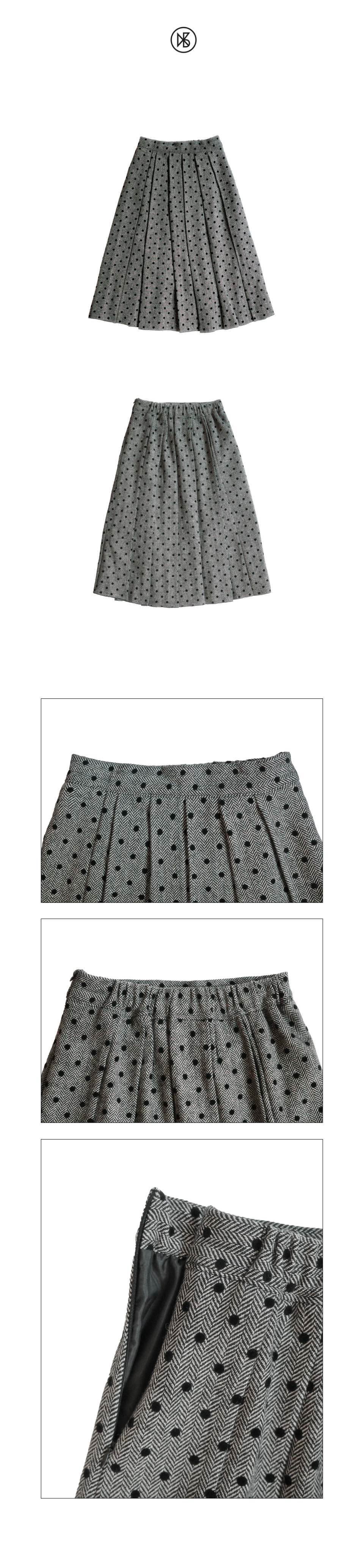 Wool Dot Herringbone Pleated Skirt FABRIC Wool 70%, Polyester 30% DETAIL -울 혼방 도트 헤린본 패턴의 주름 스커트 -안감 있음 -허리 뒷 밴딩 -사이드 지퍼 클로징 -55~66까지 추천 SIZE -원사이즈 총장 71cm, 허리 34cm(뒷 밴딩) 엉덩이 48cm, 밑단 65cm *같은 제품이라도 재는 위치에 따라 오차가 있을 수 있습니다* *해상도에 따라 화면에서 보이는 것과 색감차이가 날 수 있습니다. * WASHING INSTRUCTIONS -건조기금지 -드라이크리닝 MODEL Miu, Height 162cm