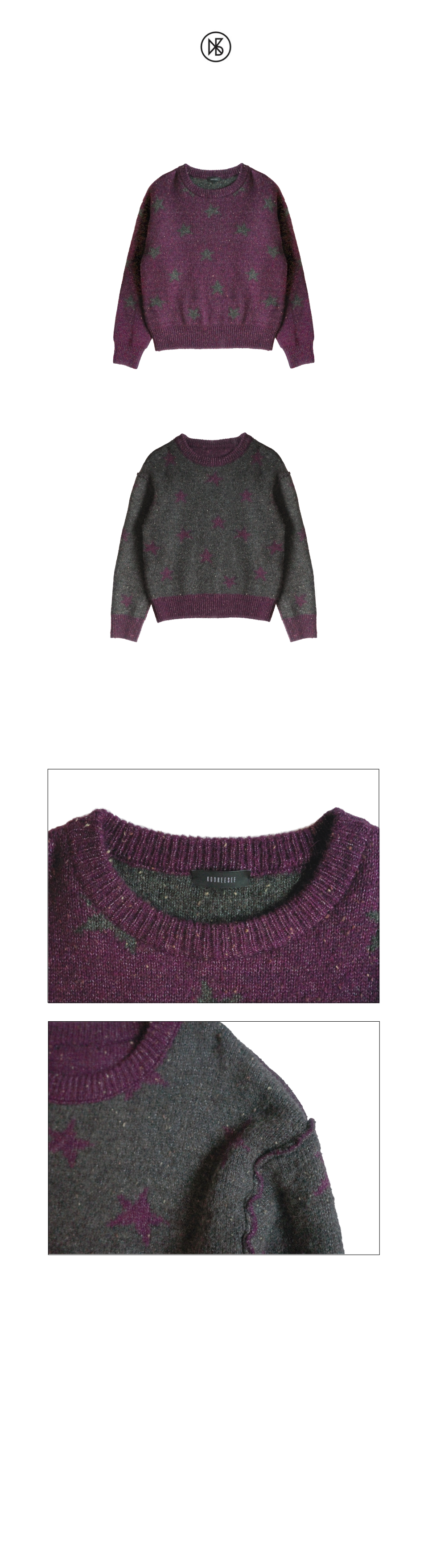 Two way Star Jacquard Knit FABRIC Acrylic 55%, Wool 20%, Polyester 24%, Span 1% DETAIL -별 패턴의 자가드 니트 -루즈한 디자인의 울 혼방 니트 -두겹으로 폭닥하게 짜인 니트로 뒤집어서 투웨이로 연출 가능 *뒤집어 입을 수 있는 니트의 특성을 살리기 위해 캐어라벨은 쉽게 떼어지게 고정 해 두었으며 시접부분이 지저분 해 보일 수 있으나 빈티지하게 즐겨 착용해 주시길 추천드립니다.* SIZE -원사이즈 총장 66cm, 어깨 57cm, 가슴 54cm , 밑단 42cm, 소매장 63cm *같은 제품이라도 재는 위치에 따라 오차가 있을 수 있습니다* *해상도에 따라 화면에서 보이는 것과 색감차이가 날 수 있습니다. * WASHING INSTRUCTIONS -찬물세탁 또는 드라이크리닝 -건조기 금지 -표백제 사용금지 MODEL Miu, Height 162cm