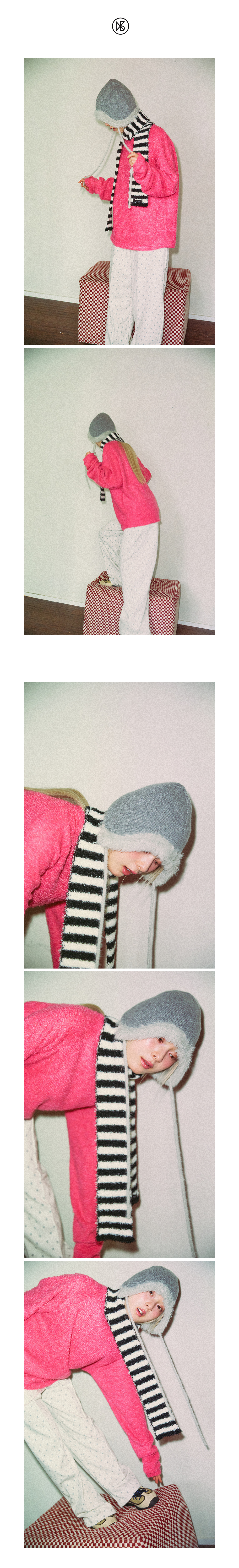 Furry Knit Trooper Hat FABRIC Shell : Acrylic 53%, Nylon 28%, Wool 10%, mohair 6%, Span 3% Fur Trim : Nylon 100% DETAIL -트루퍼 니트햇 -깊은 깊이감 -나일론 퍼 원사로 헤어리한 밑단 라인과 끈이 달린 디자인 SIZE -원사이즈 높이(중심기준) 21cm, 밑단둘레(단면) 36cm *같은 제품이라도 재는 위치에 따라 오차가 있을 수 있습니다* *해상도에 따라 화면에서 보이는 것과 색감차이가 날 수 있습니다. * WASHING INSTRUCTIONS -드라이크리닝 MODEL Miu, Height 162cm