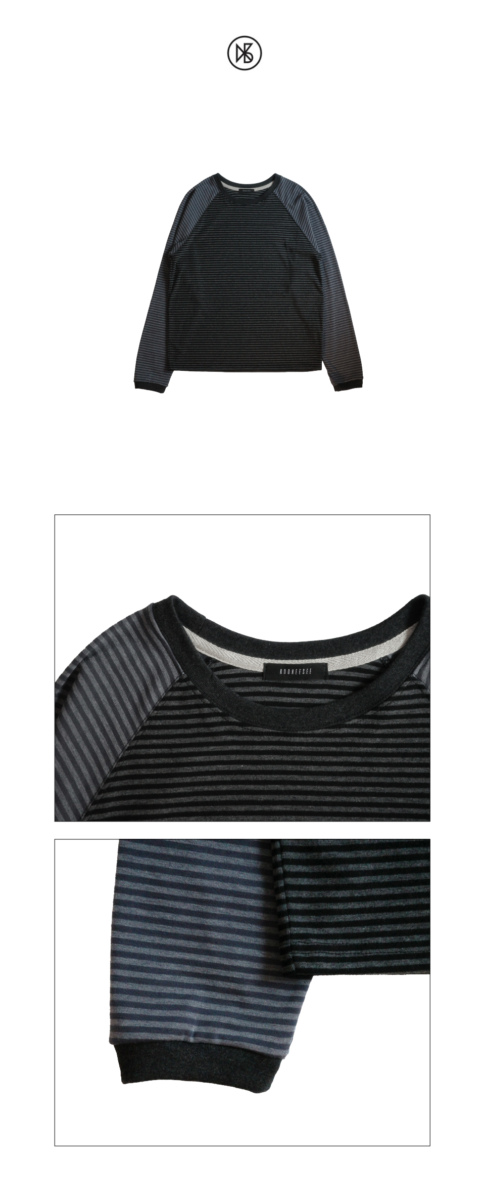 쿠키시 TF 스트라이프 래글런 슬리브 티셔츠 블랙/차콜