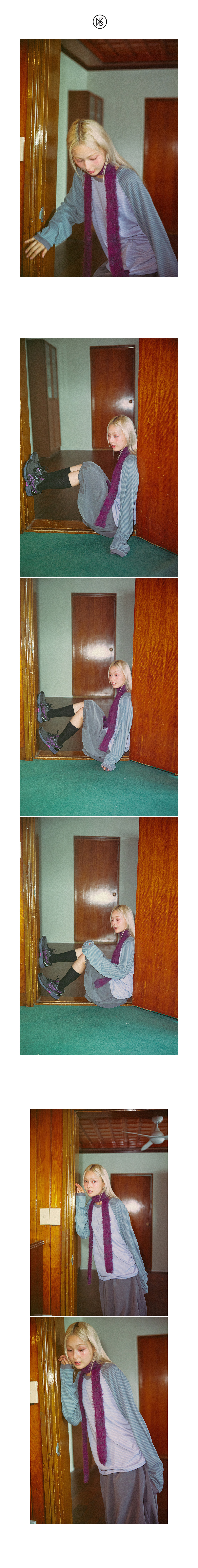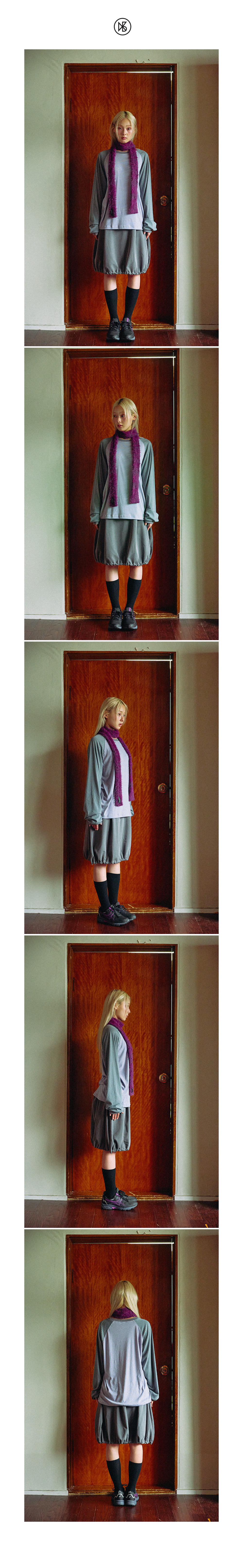 쿠키시 TF 스트라이프 래글런 슬리브 티셔츠 라이트 퍼플/카키