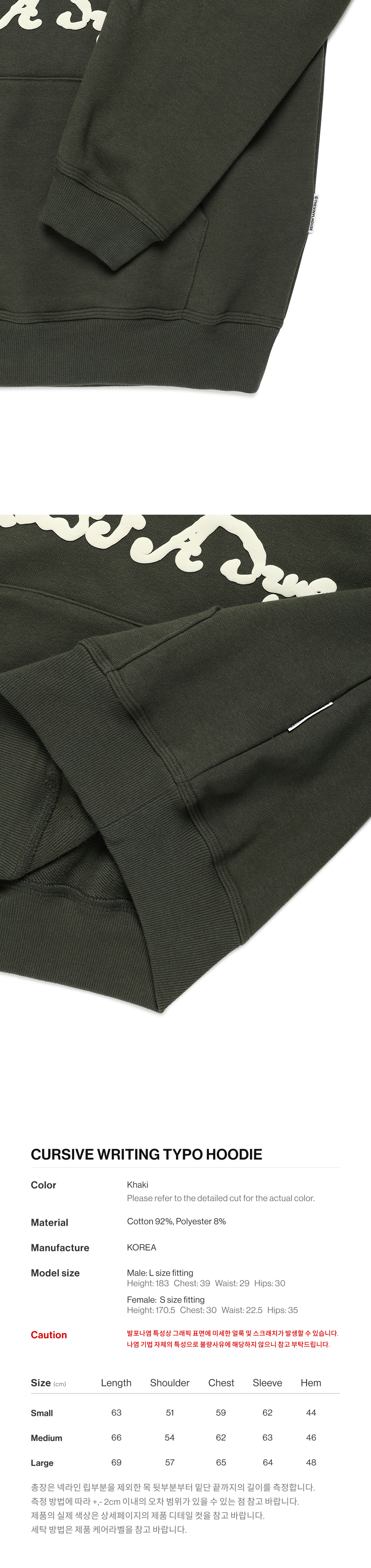더바이닐하우스 커시브 라이팅 타이포 후디 카키