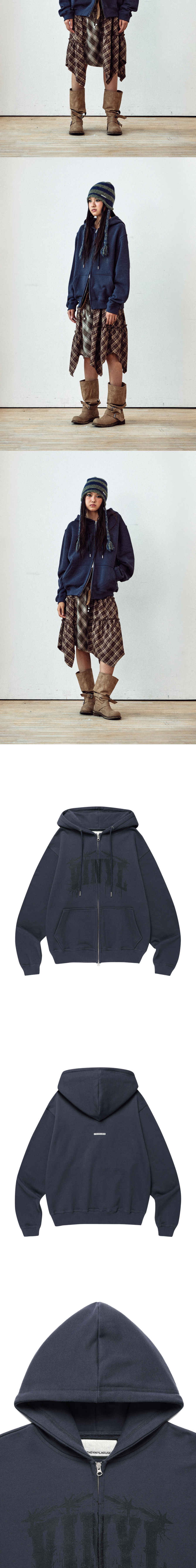 더바이닐하우스 그래픽 후드 집업 네이비