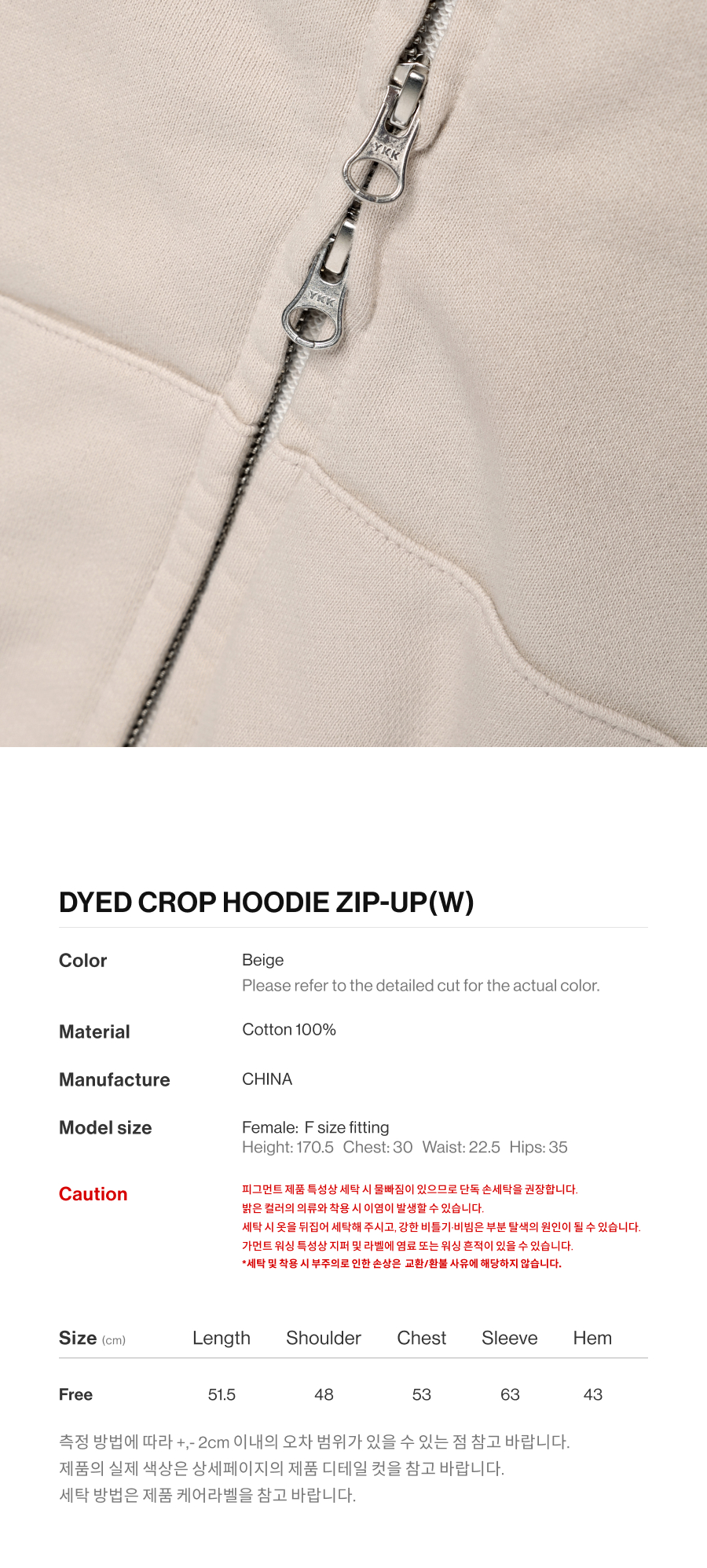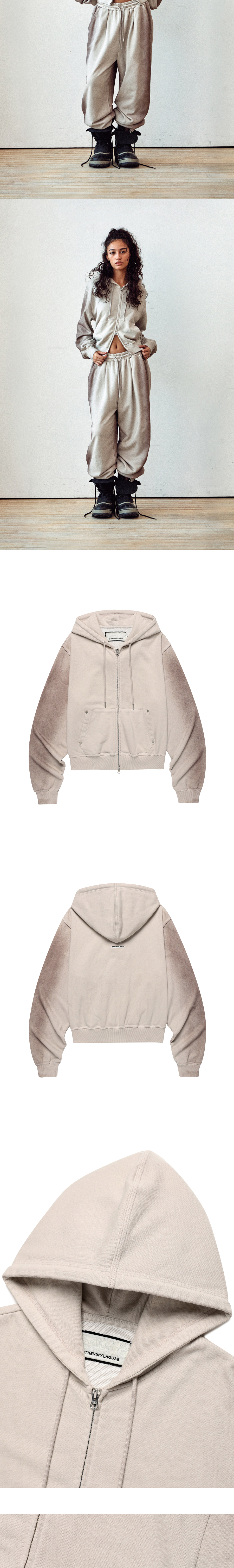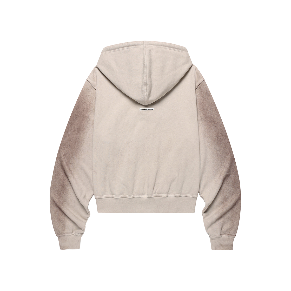 (W) Thevinylhouse Dyed Crop Hoodie Zip Up Beige