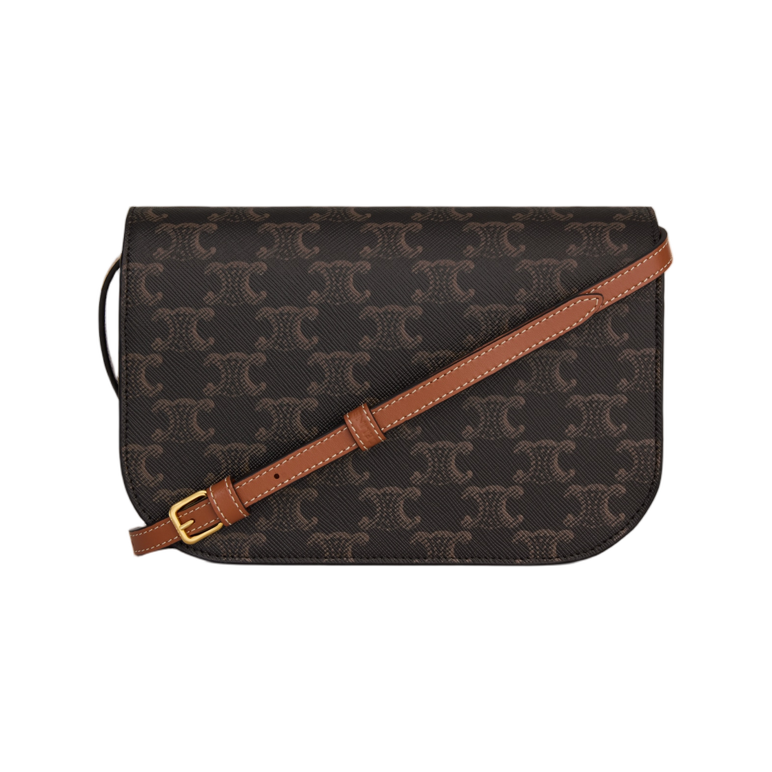 셀린느 듀오 월렛 온 스트랩 트리옹프 캔버스 앤 카프스킨 탄