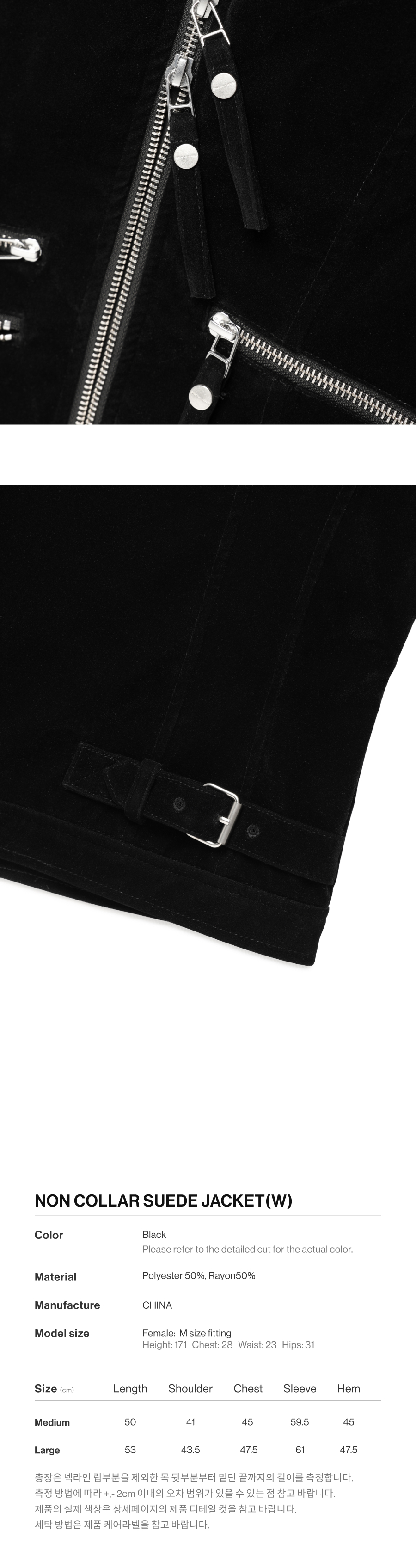 (W) Thevinylhouse Non Collar Suede Jacket Black