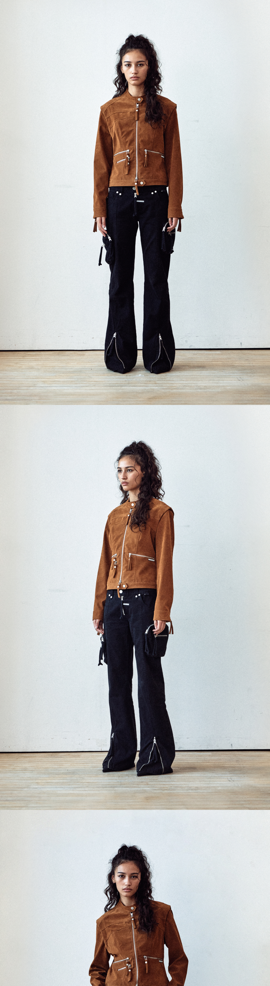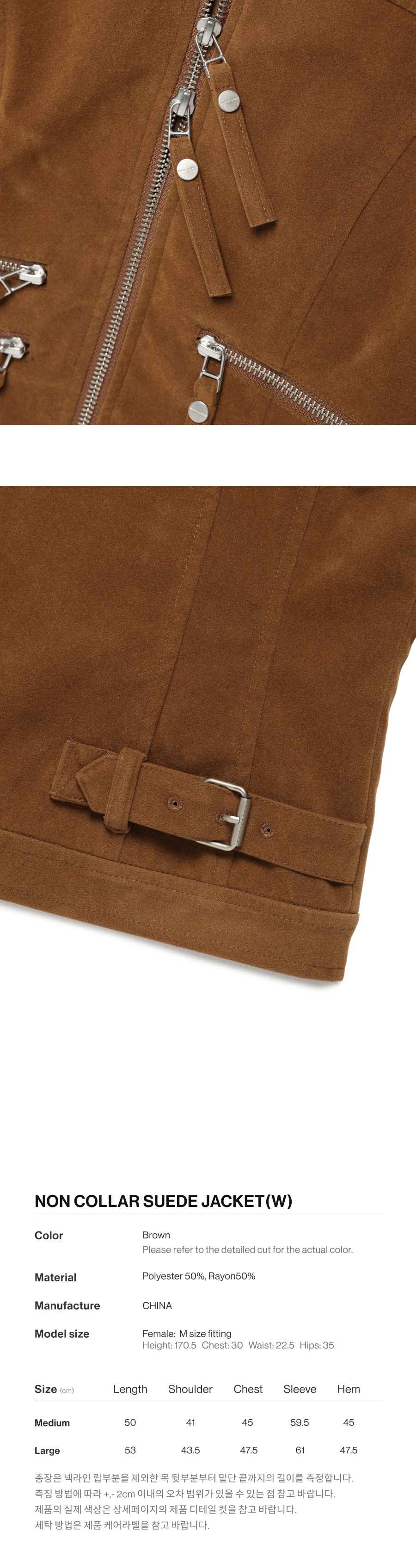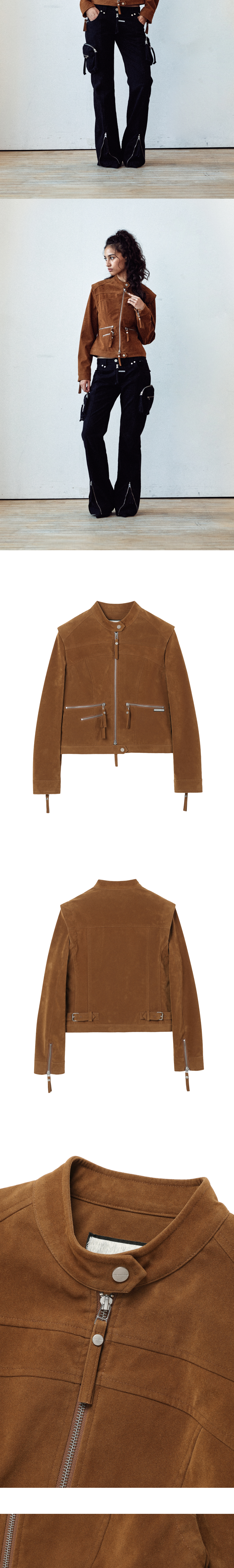 (W) Thevinylhouse Non Collar Suede Jacket Brown