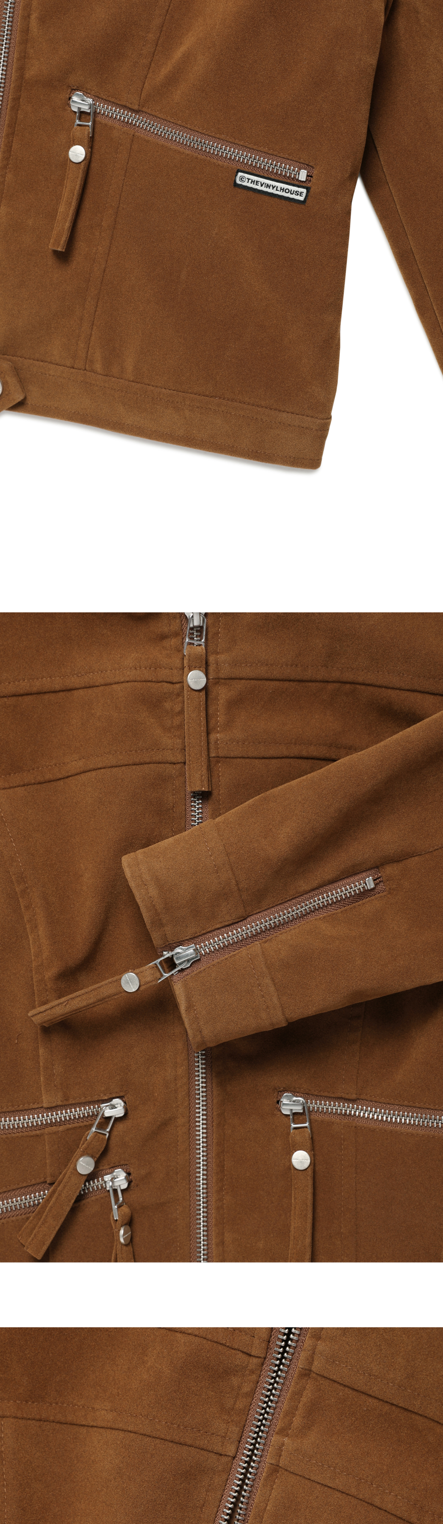 더바이닐하우스 논 칼라 스웨이드 자켓 브라운