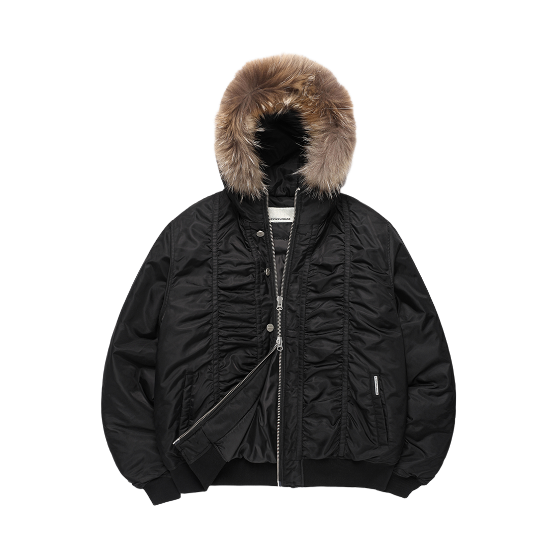 Thevinylhouse Fur Hooded MA-1 Jacket Black