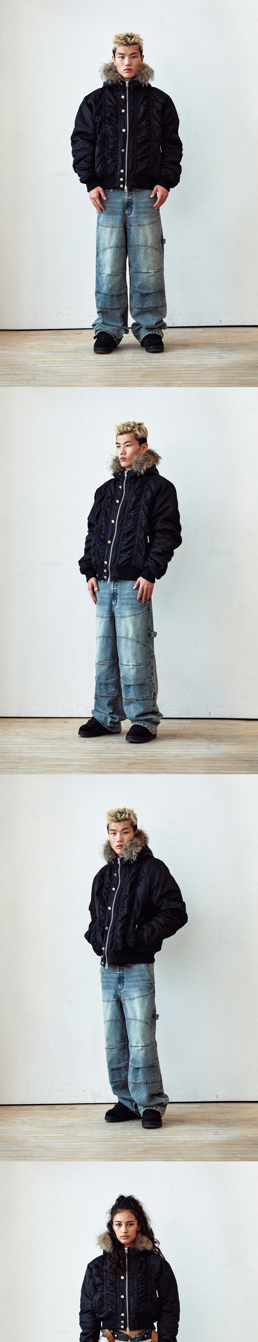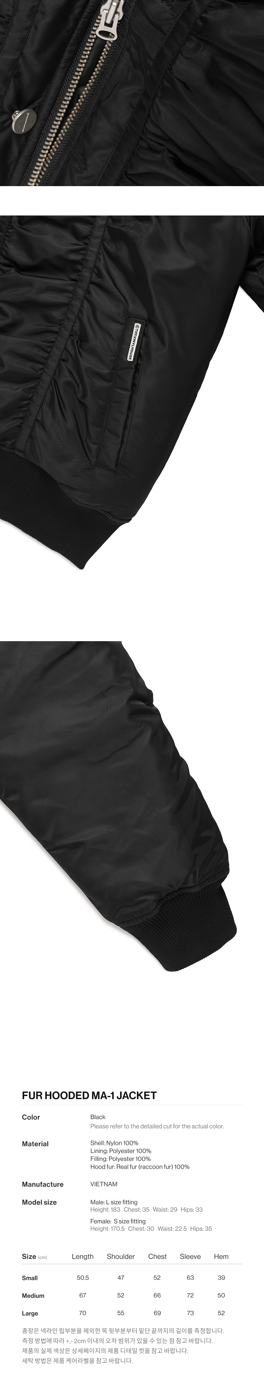 더바이닐하우스 퍼 후디드 MA-1 자켓 블랙