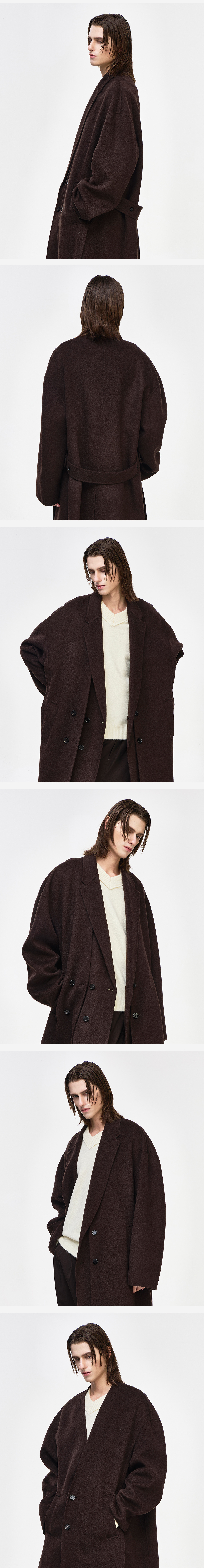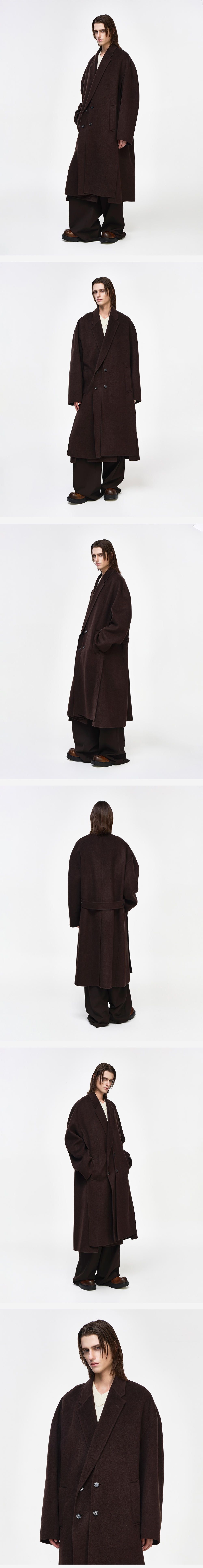 - SONGZIO HOMME 플레어 메타 헨드메이드 코트 - 부드러운 터치감의 캐시미어 울 패브릭 - 카라리스 코트와 노치드 라펠의 레이어드 디자인 - 전면 웰트 포켓으로 구성 - 벨트 디테일 - 센터 벤트 디테일 - 오버사이즈 실루엣 FABRICATION MADE IN KOREA