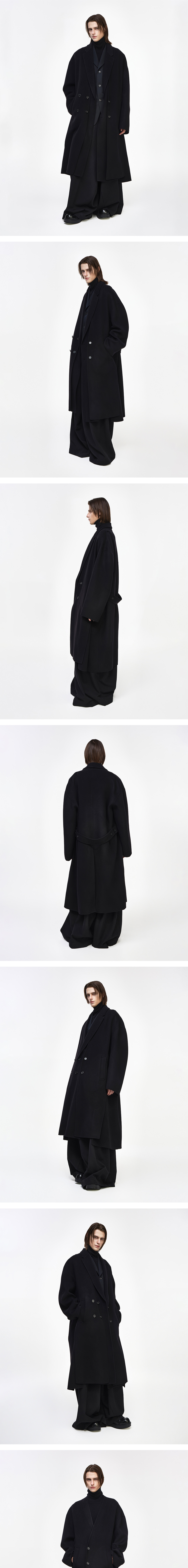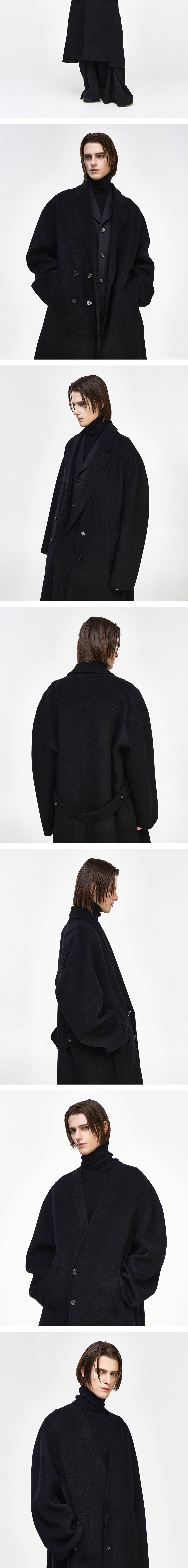 - SONGZIO HOMME 플레어 메타 헨드메이드 코트 - 부드러운 터치감의 캐시미어 울 패브릭 - 카라리스 코트와 노치드 라펠의 레이어드 디자인 - 전면 웰트 포켓으로 구성 - 벨트 디테일 - 센터 벤트 디테일 - 오버사이즈 실루엣 FABRICATION MADE IN KOREA