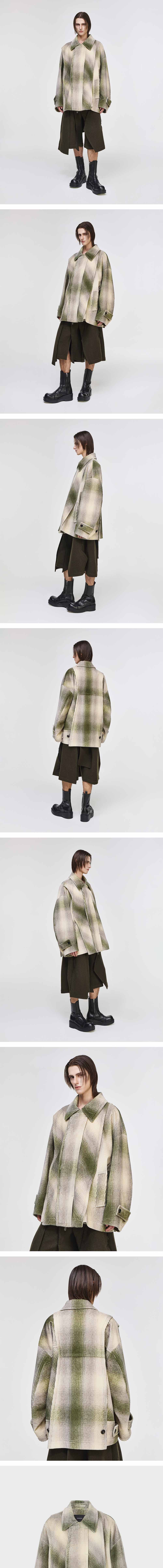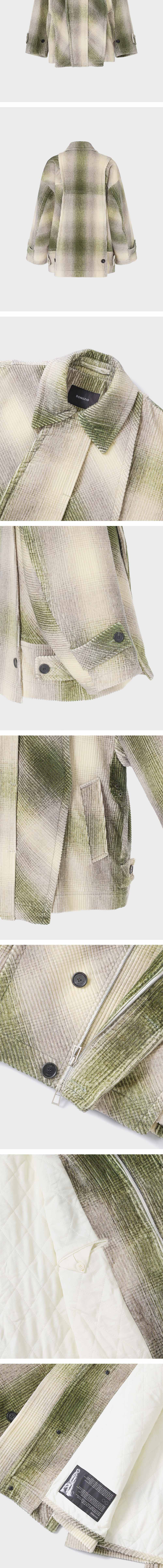 - SONGZIO 컬렉션 컷 아웃 초어 자켓 - 부드러운 터치감의 체크 패턴 코듀로이 패브릭 - 어시메트릭 컷아웃 쵸어자켓 디자인 - 전면부 히든 플라켓 웰트 포켓 - 소매와 밑단 장식 디테일 - 소매 몸판 퀼팅 라이너 - 오버사이즈 실루엣 FABRICATION MADE IN KOREA