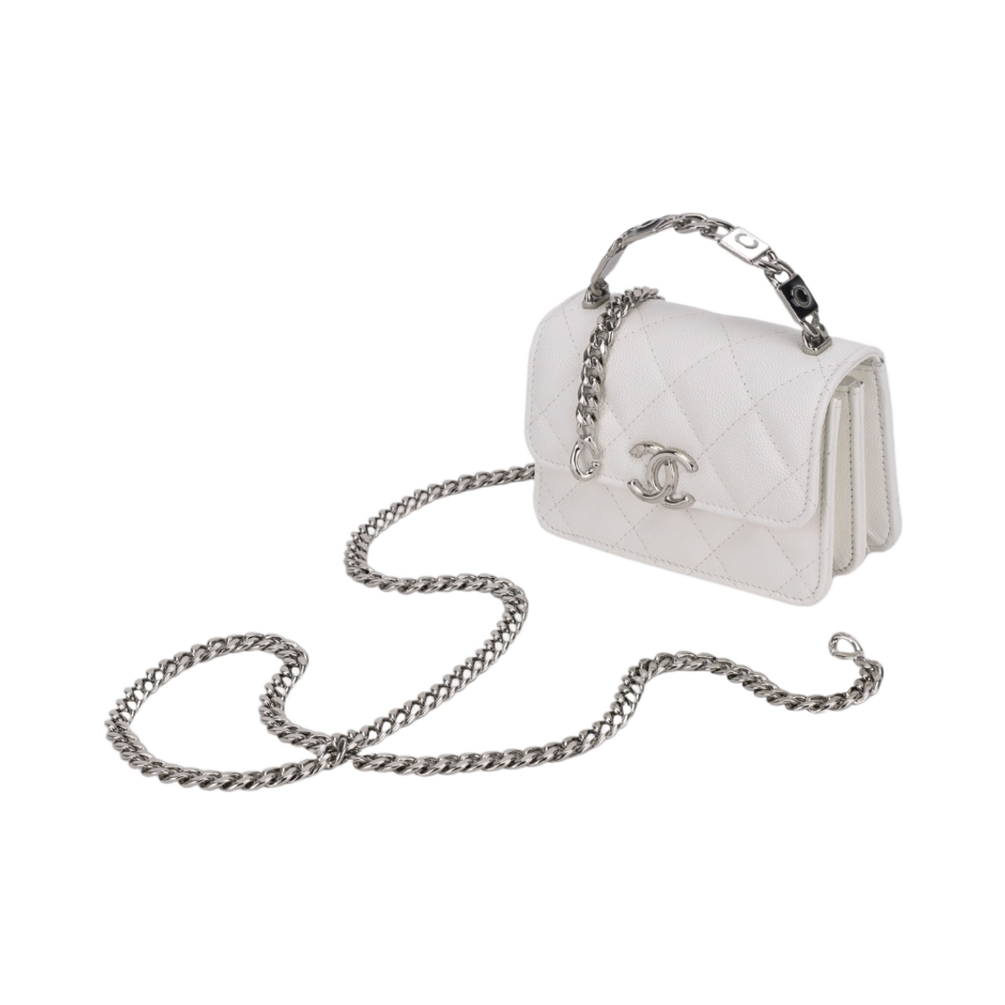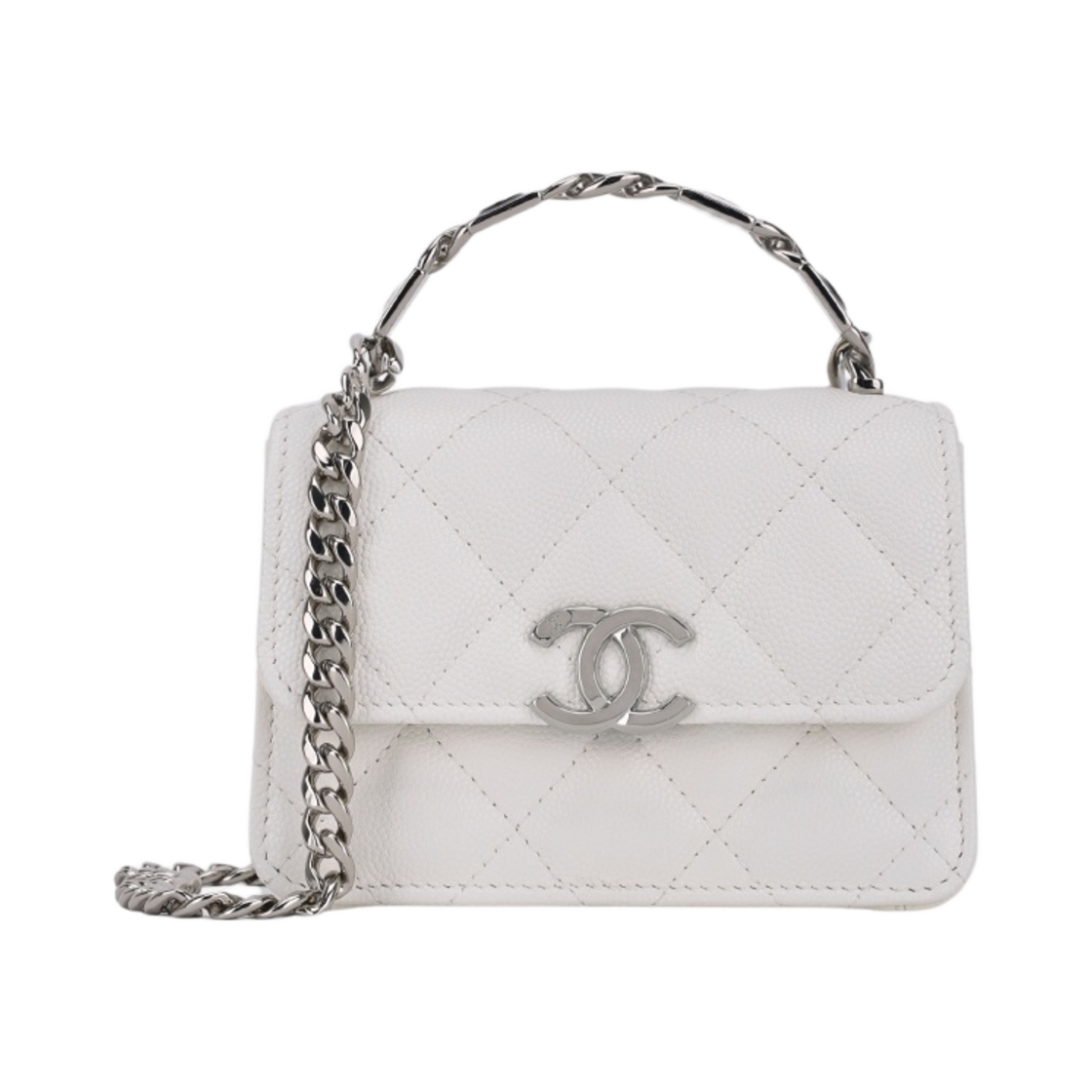 샤넬 체인 달린 미니백 샤이니 그레인드 카프스킨 & 실버 메탈 화이트