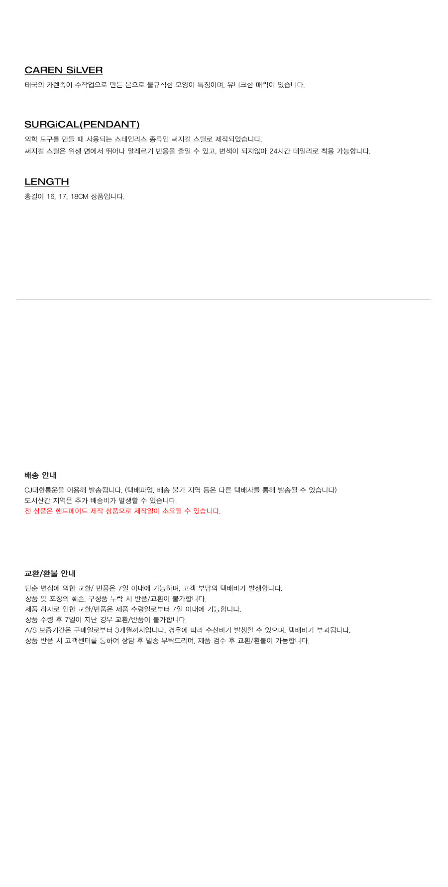 NiRO의 모든 제품은 핸드메이드로 주문 후 최대 10일 이내에 걸쳐 주문 제작됩니다. 카렌 실버와 실로 포인트를 준 팔찌입니다. 카렌 실버의 채움 정도가 100%, 70%, 50% 나눠져 있어 실이 보이는 정도를 취향에 맞추어 선택하실 수 있습니다. 여성 추천 사이즈 16CM 17CM 남성 추천 사이즈 18CM