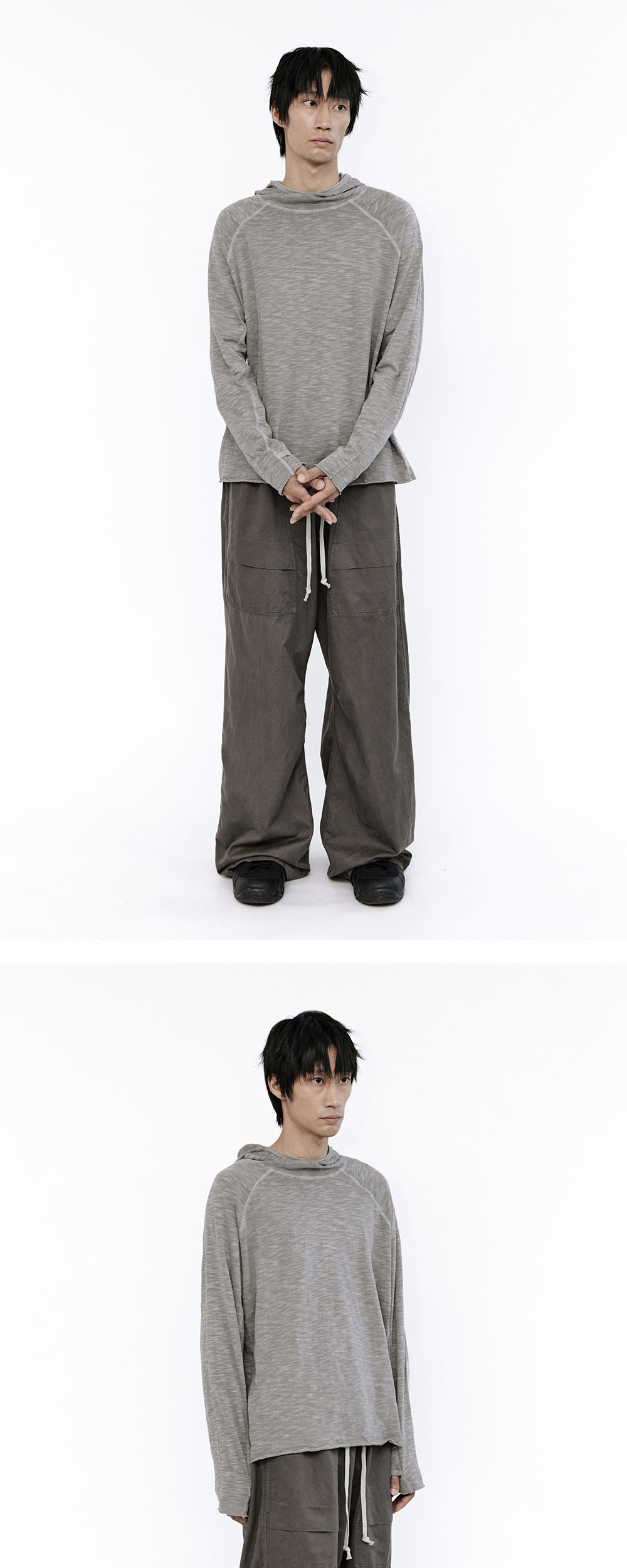 human turtle neck hoodie - 부드러운 촉감의 코튼 터틀넥 후드 롱슬리브 - 하이넥 타입의 후드 - 핑거홀 디테일 - 요철감이 느껴지는 슬럽 원단 - 러프한 밑단 & 소매 마감 - 사이드 패널로 입체적인 디자인 *남성모델: 170 중반, 마른 체형 / 3사이즈 착용 *여성모델: 170 초반, 마른 체형 / 3사이즈 착용 *일반 체형 기준 - 170cm 초반 이하 2사이즈 권장 - 170cm 중반 3사이즈 권장 - 170cm 후반~180cm 초반 4사이즈 권장