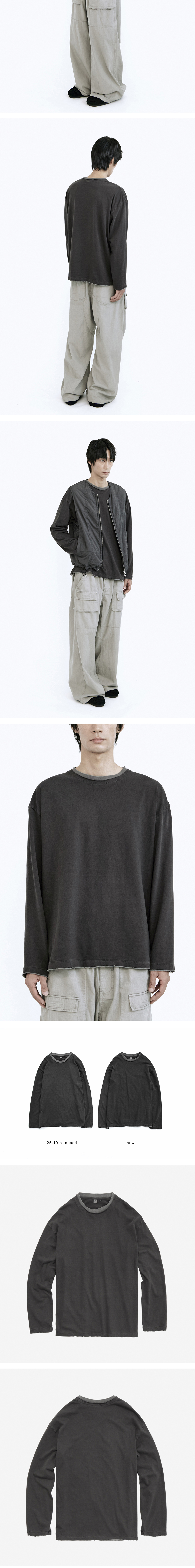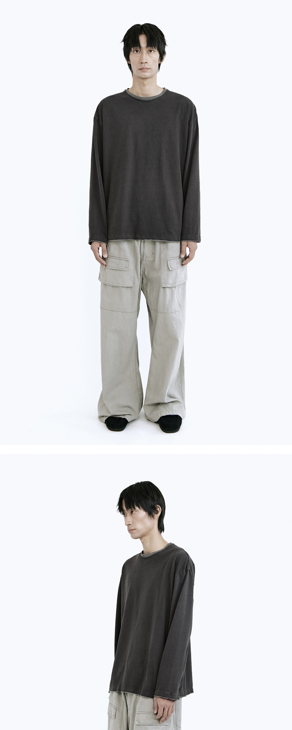 layered long sleeves - 2가지 컬러의 컷아웃 레이어링이 적용된 롱 슬리브 티셔츠 - 사용감이 강조되는 강한 워싱 가공 - 부드러운 터치감 & 필링감 - 후면 넥라인 ~ 어깨 체인스티치 마감 *모델: 170 중반, 마른 체형 / 3사이즈 착용 *금번 차수는 직전 차수 대비, 한 톤 어둡게 완성됐습니다.