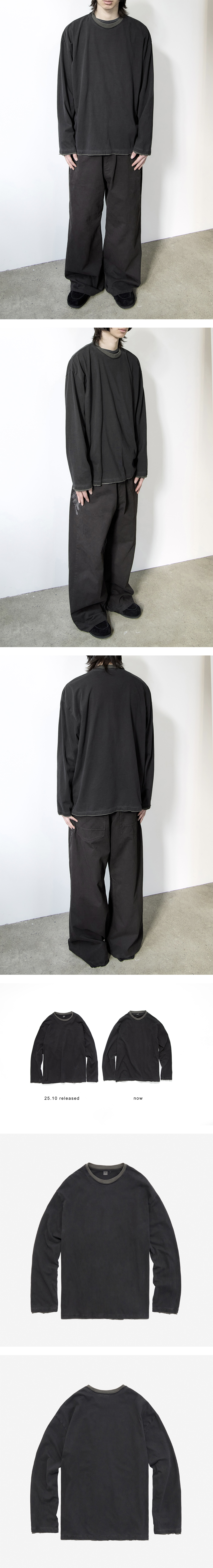 layered long sleeves - 2가지 컬러의 컷아웃 레이어링이 적용된 롱 슬리브 티셔츠 - 사용감이 강조되는 강한 워싱 가공 - 부드러운 터치감 & 필링감 - 후면 넥라인 ~ 어깨 체인스티치 마감 *모델: 170 중반, 마른 체형 / 3사이즈 착용 *금번 차수는 직전 차수 대비, 미세하게 연하게 완성됐습니다.