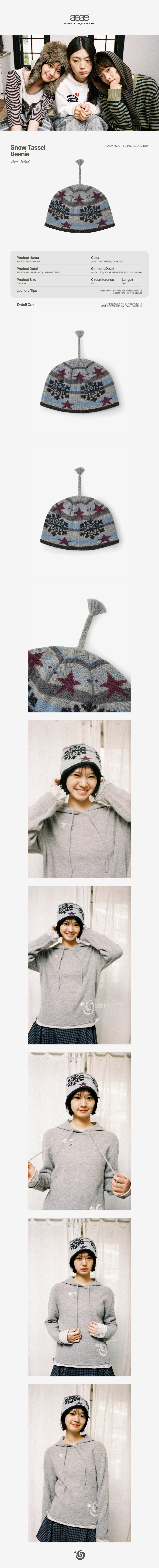에이이에이이 스노우 태슬 비니 라이트 그레이
