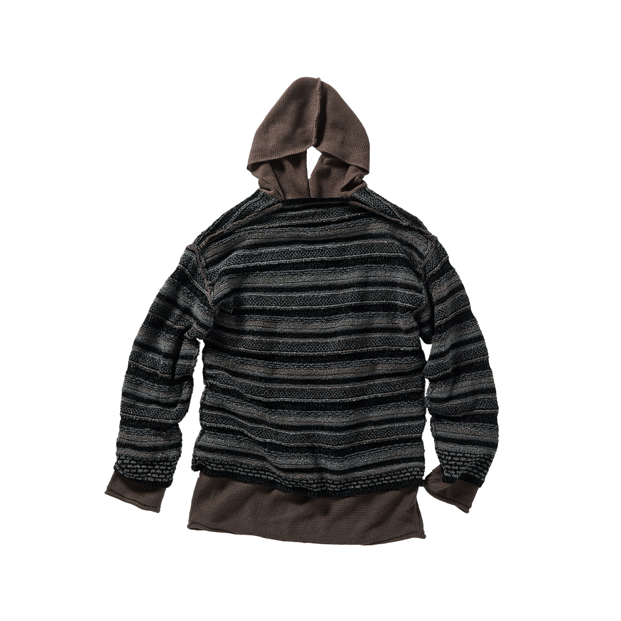 레이어드 디자인이 돋보이는 퍼버즈 우먼 더블 니트 드레스 브라운입니다. - 다양한 원사와 편직 기법으로 완성된 스트라이프 패턴 - 레이어드 디자인으로 차별화된 실루엣 - 후드 디테일 - 레귤러 핏