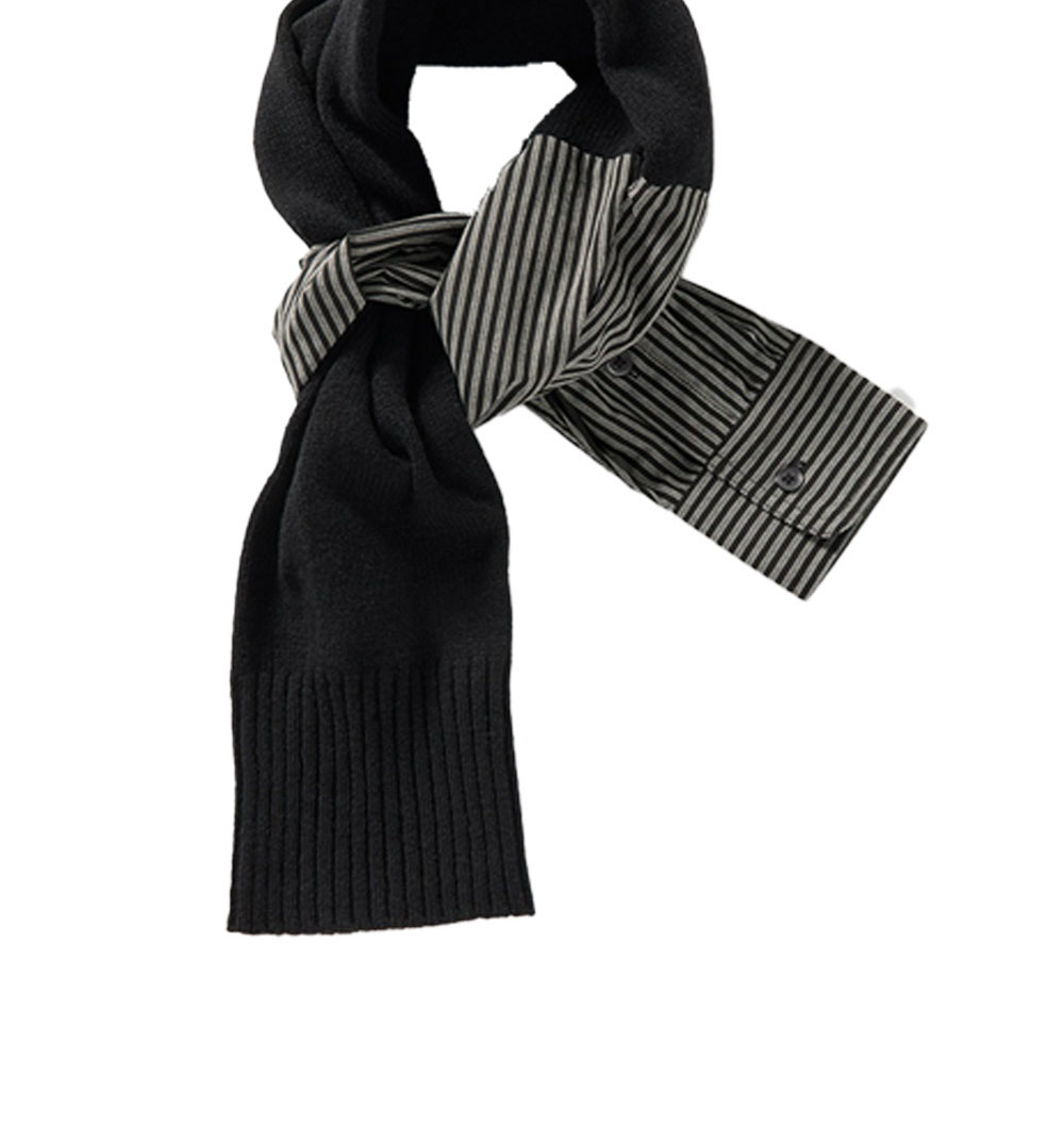 스트라이프 자카드 패브릭과 니트가 조합된 퍼버즈 우먼 더블 슬리브 스카프 블랙입니다. - 니트 슬리브와 셔츠 슬리브를 결합한 유니크한 디자인 - 소프트 터치 램스울 원사 사용으로 부드러운 착용감 - 스트라이프 자카드 패브릭으로 모던한 포인트 연출 ✧ AI로 제작한 콘텐츠가 포함되었습니다.