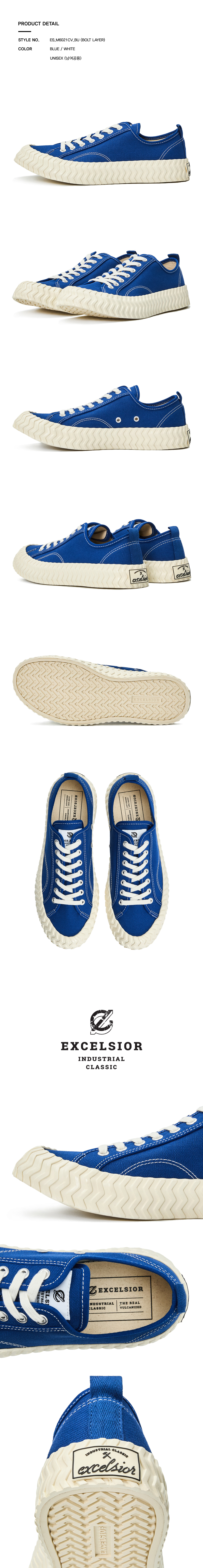 엑셀시오르 2025FW 볼트 레이어 블루 화이트 스니커즈 남녀공용 사이즈