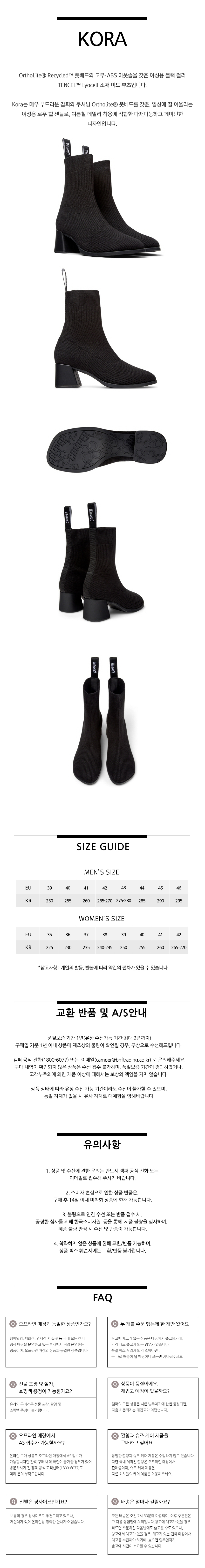 캠퍼 여성 코라 부츠 블랙