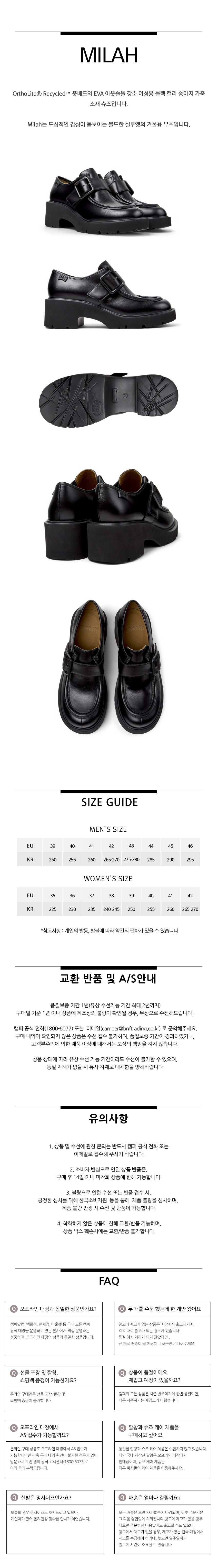 캠퍼 여성 밀라 펌프스 블랙