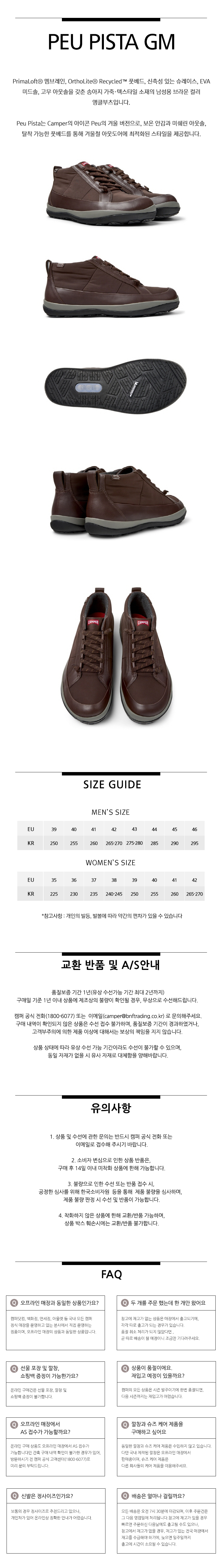 캠퍼 남성 페우 피스타 GM 부츠 브라운