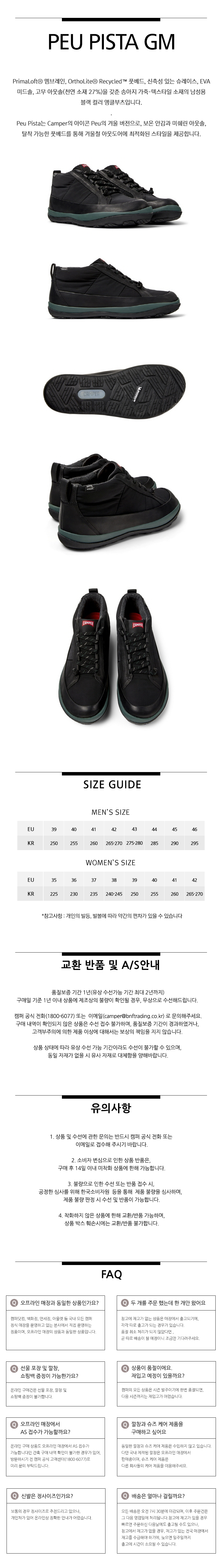 캠퍼 남성 페우 피스타 GM 부츠 블랙