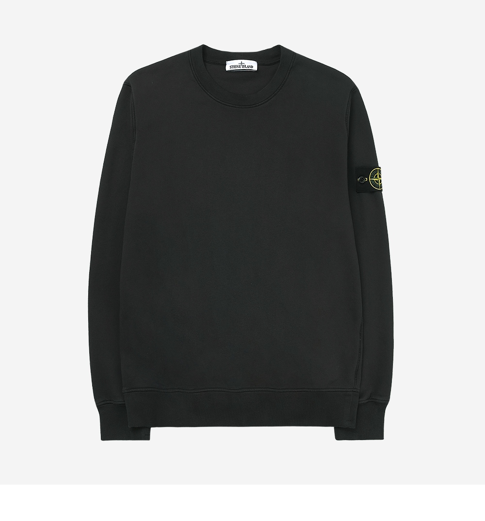 스톤 아일랜드 6100060 오가닉 코튼 플리스 레귤러 핏 크루넥 스웨트셔츠 엘라스티케이티드 커프스 차콜 그레이 - 25FW