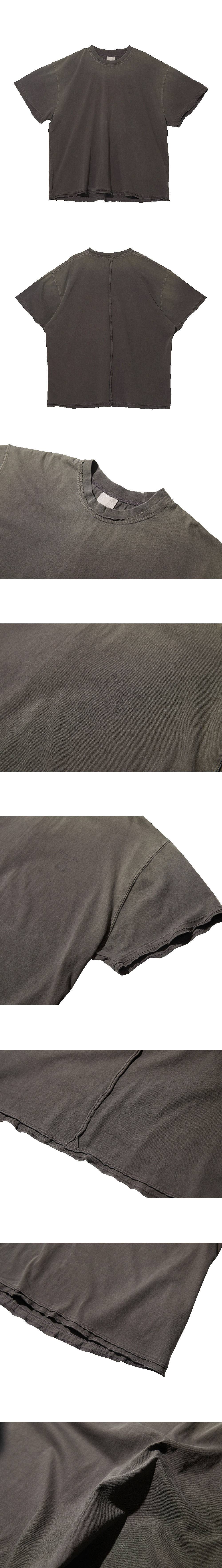 언더마이카 무.113 콤비 로우 엣지 워시드 티셔츠 모카