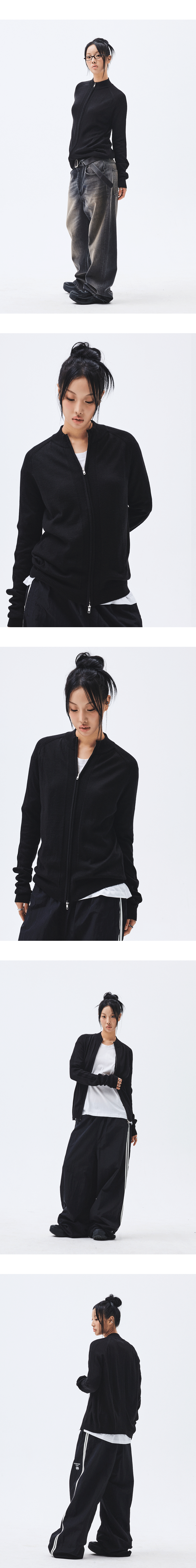 언더마이카 무.139 클래식 로고 슬림 베이식 니트 집업 블랙