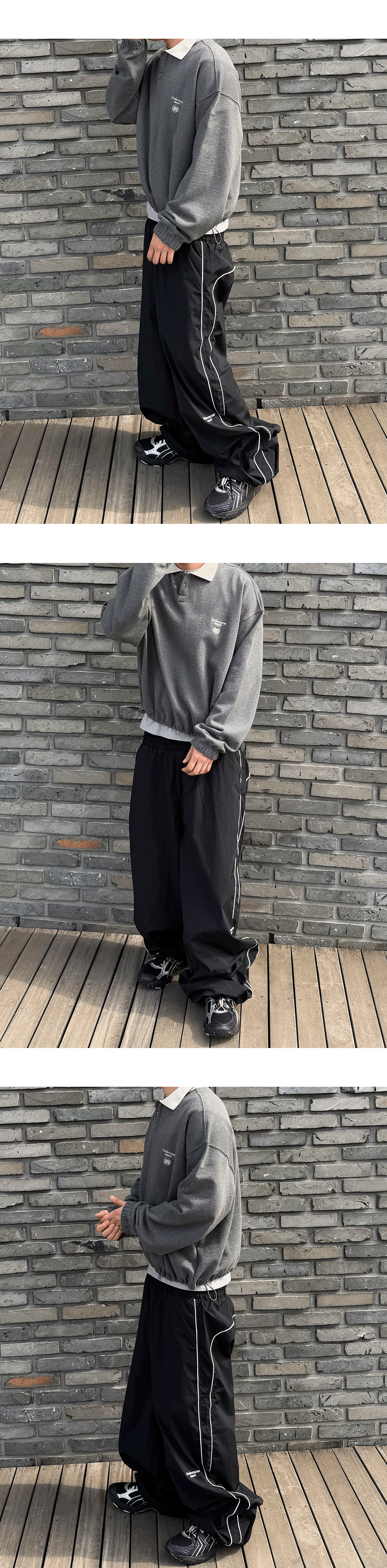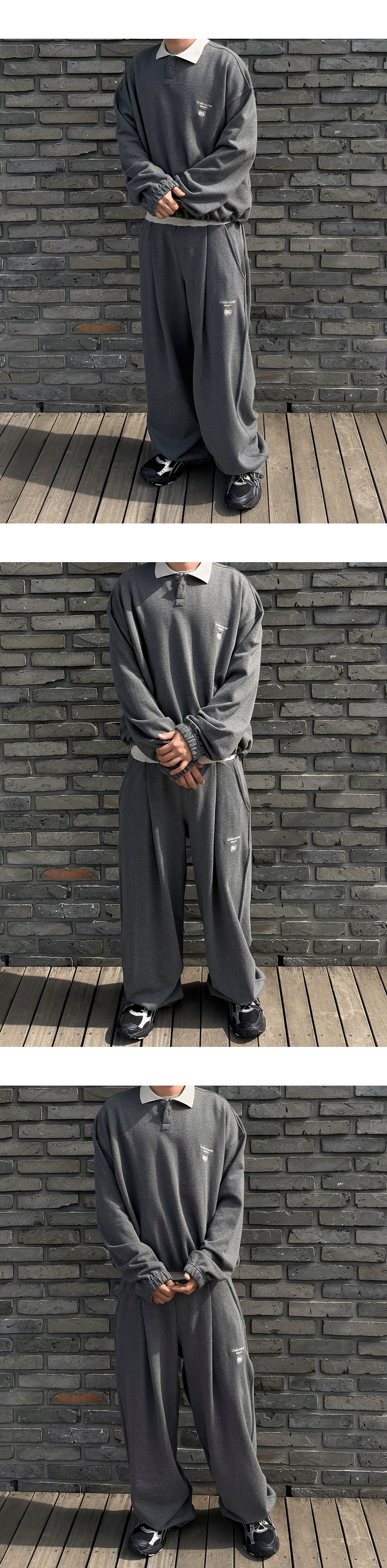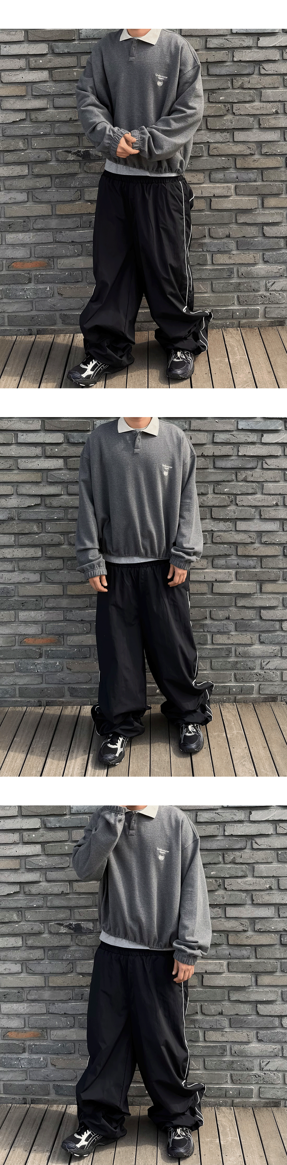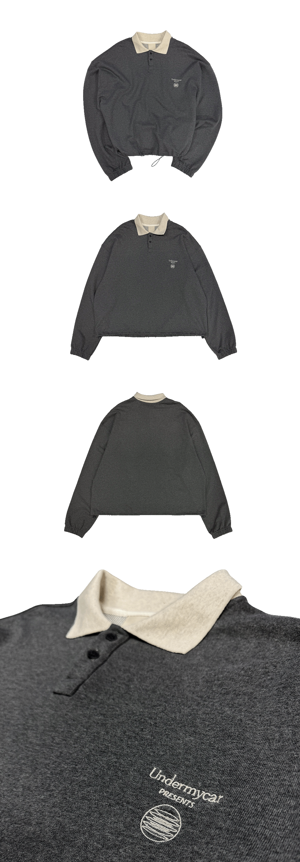 언더마이카 무.140 콤비 크롭 칼라 스웨트셔츠 차콜