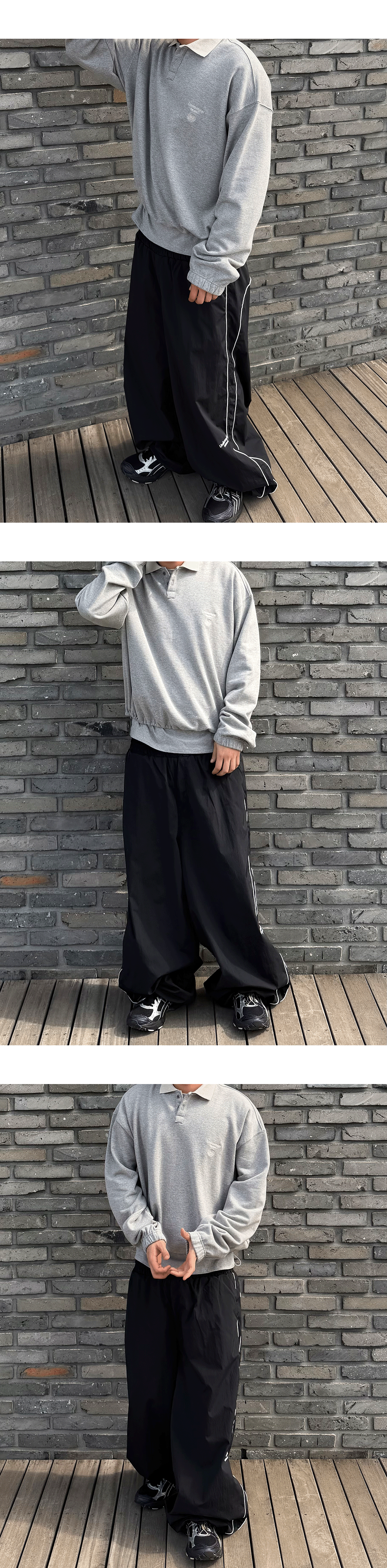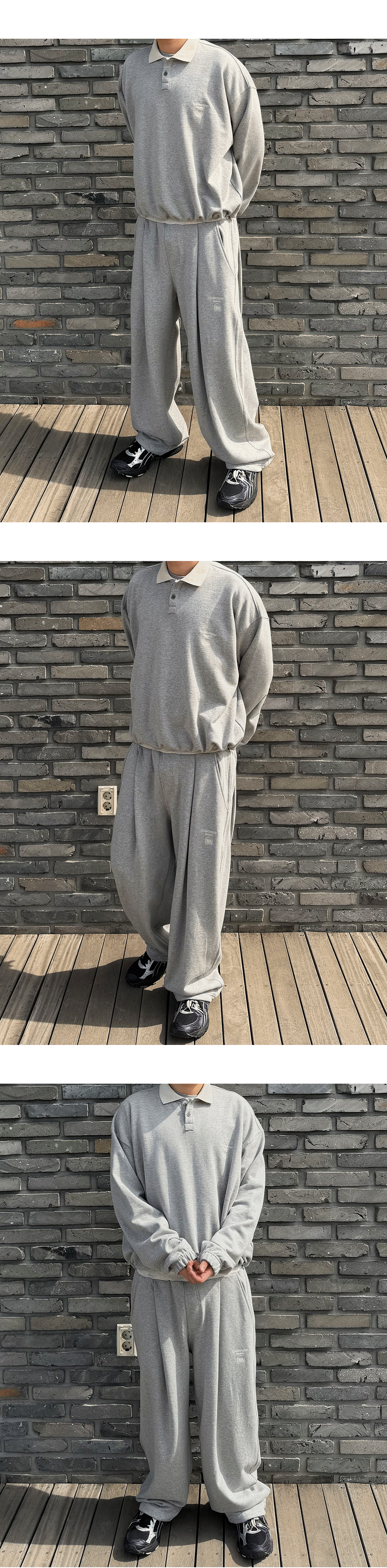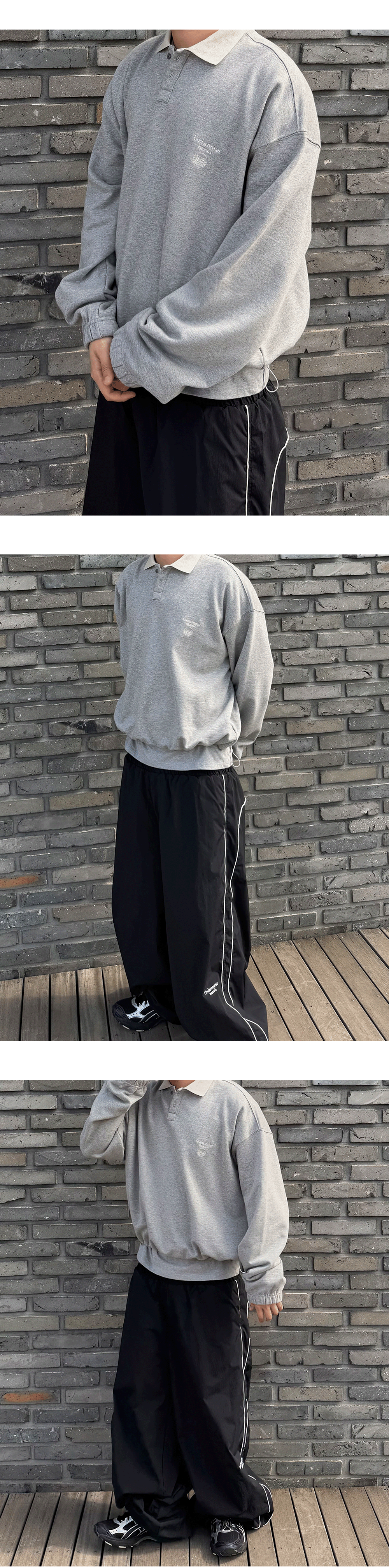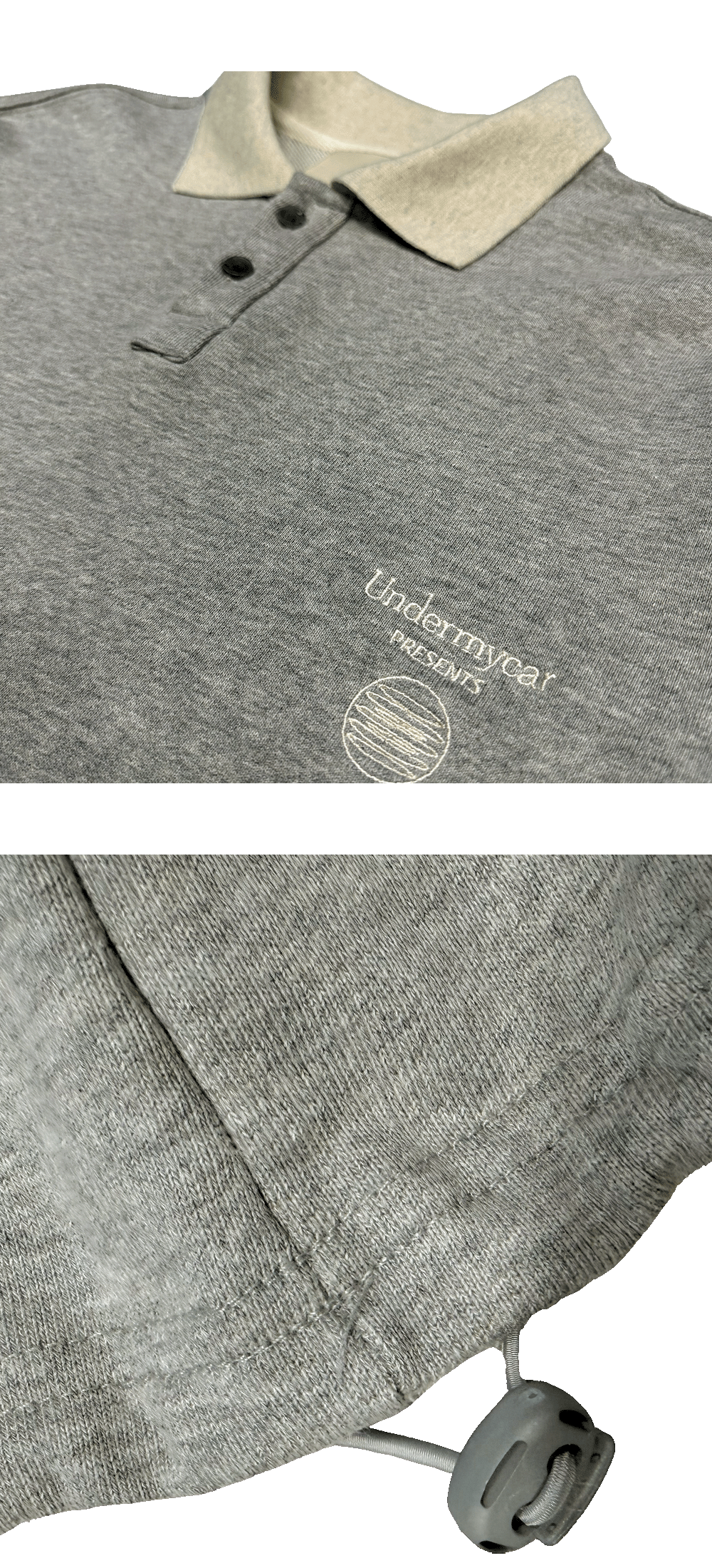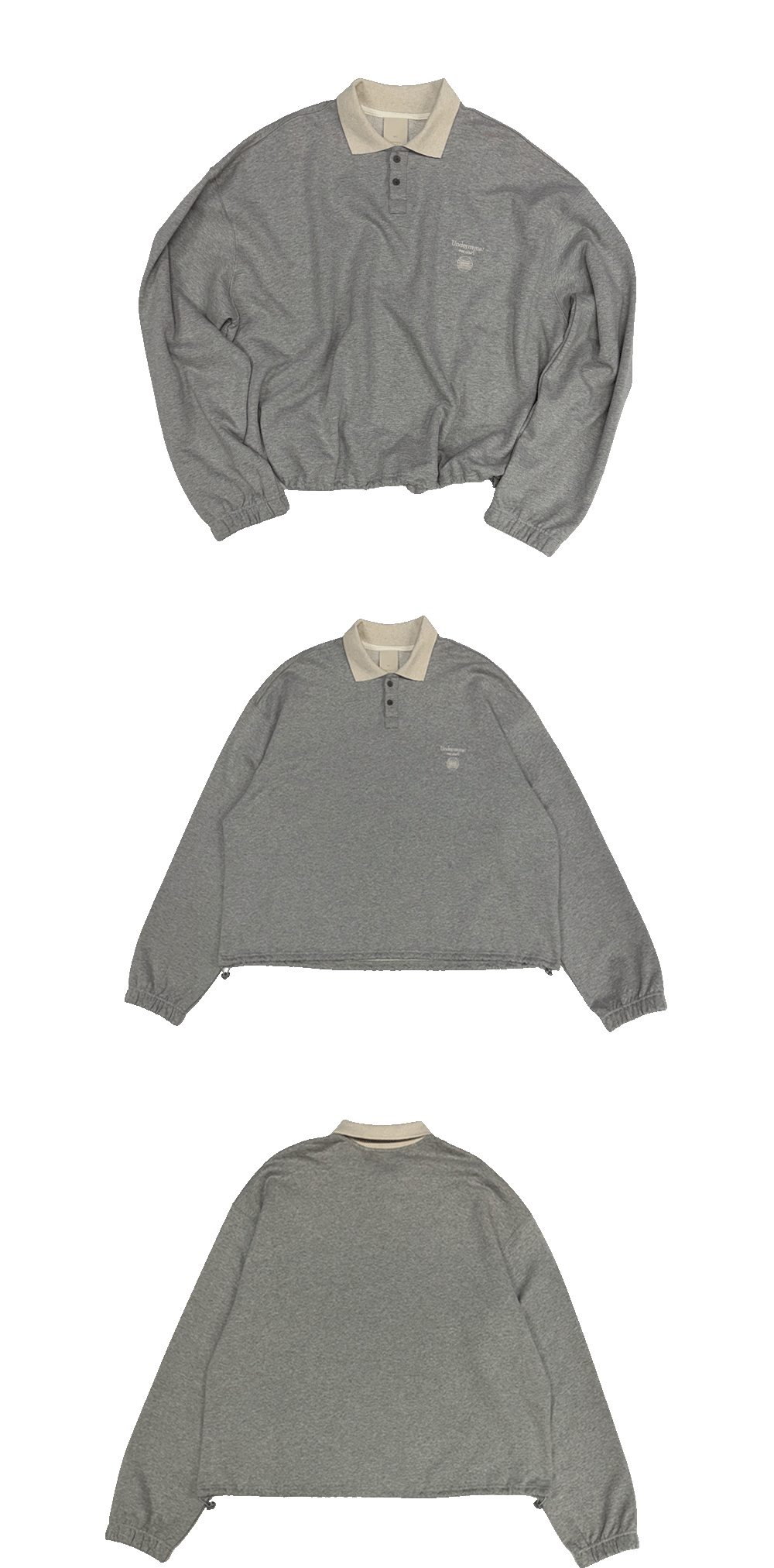 언더마이카 무.140 콤비 크롭 칼라 스웨트셔츠 멜란지 그레이