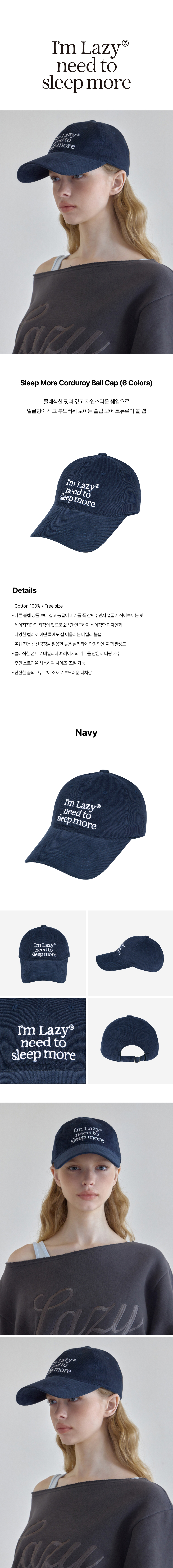 레이지지 슬립모어 코듀로이 볼캡 네이비