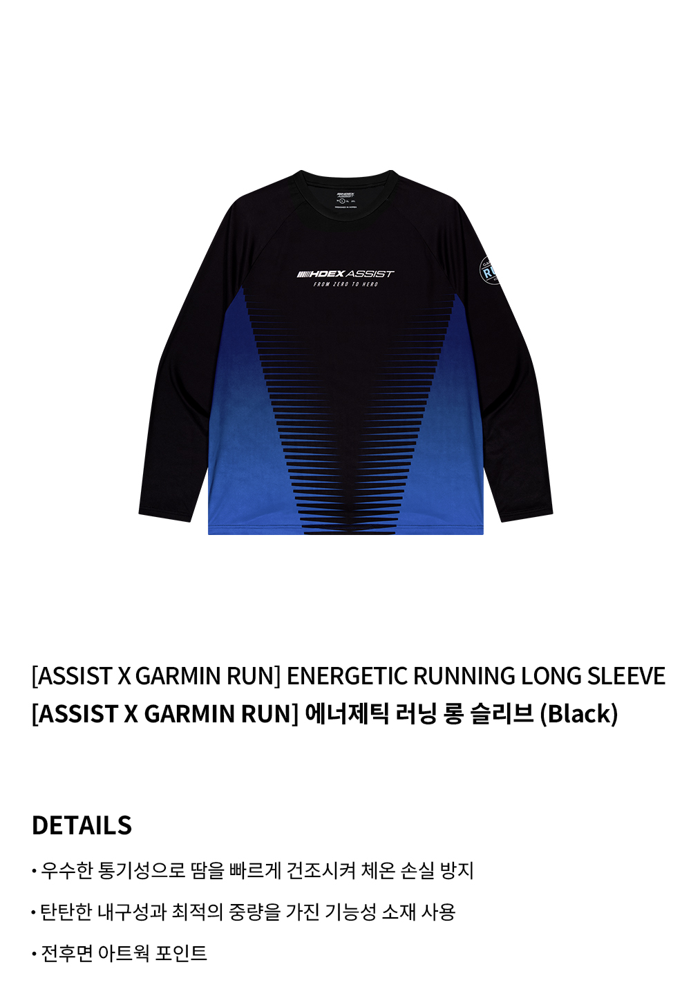 에이치덱스 어시스트 X 가민 런 에너제틱 러닝 롱 슬리브 블랙